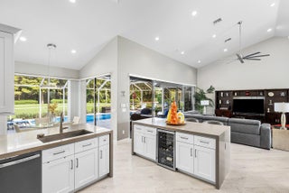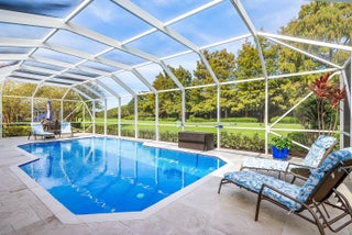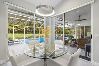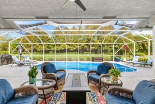 This stunning, updated home blends modern style with everyday luxury, offering over 2,700 sq. ft. of beautifully designed living space, including 3 bedrooms plus a convertible bedroom/den/office, 2.5 baths, and 2.5 garage spaces. Set on an ultra-private golf-front and preserved lot with its own recently updated heated pool, it is truly move-in ready From the moment you enter, the home makes an unforgettable impression. Oversized wall-to-wall sliders in the living room, breakfast area, and primary bedroom flood the space with natural light and deliver uninterrupted views of your personal paradise.Luxury vinyl flooring, no popcorn ceilings.The chef's kitchen is a showstopper crafted with a sleek custom layout, real-wood shaker cabinetry, and virtually indestructible quartz countertops. High-end GE slate-stainless appliances. Every bathroom has been completely reinvented with modern finishes, stylish niches, and sleek frameless glass enclosures. The primary bath showcases a luxurious, top-tier spa tub perfect for unwinding. Storage is abundant with a guest room walk-in closet, and stylish barn door closures on the primary closet. Step into your own private poolside oasis the pool has been completely redesigned with a newer pool heater and upgraded, creating a luxurious retreat perfect for relaxing, entertaining, or enjoying the Florida sunshine year-round. The sparkling freeform pool anchors the outdoor living space with resort-like ambiance. Whether hosting weekend barbecues, unwinding with evening swims, or soaking in the serene golf and tranquil views, this outdoor sanctuary is designed to impress. Perfectly positioned for buyers seeking a move-in-ready home with a fully refreshed, dream-style pool experience, this property delivers an unparalleled blend of privacy, comfort, and modern elegance.
