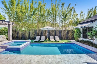 Truly one of a kind. This rare Downtown Delray Beach compound encompasses the entire corner of N Swinton Ave and features a main residence and full guest home connected by a custom breezeway with a stunning resort-style pool and spa at the center. Completely rebuilt in 2021 with brand-new everything, including a new roof, all new appliances, full impact windows and doors, and a whole-home generator.Inside, the main residence was meticulously reimagined with custom millwork, refined wall treatments, designer lighting, built-ins, a large gas stove, and gorgeous pecan flooring. Accordion impact glass doors open wide for seamless indoor-outdoor living. Outside, the pool area is framed by bamboo privacy landscaping, multiple seating areas, and an additional third full bathroom accessibledirectly from the pool. The luxurious guest home includes its own entrance/patio, full kitchen, spacious living area, separate bedroom and full bathroom with laundry room. All of this sits just 2 blocks north of Atlantic Ave and 1 block east of Pineapple Grove, offering unmatched walkability to Delray's best dining, shopping, galleries, and nightlife. Private, quiet, and beautifully curated, this is the ultimate downtown Delray sanctuary.