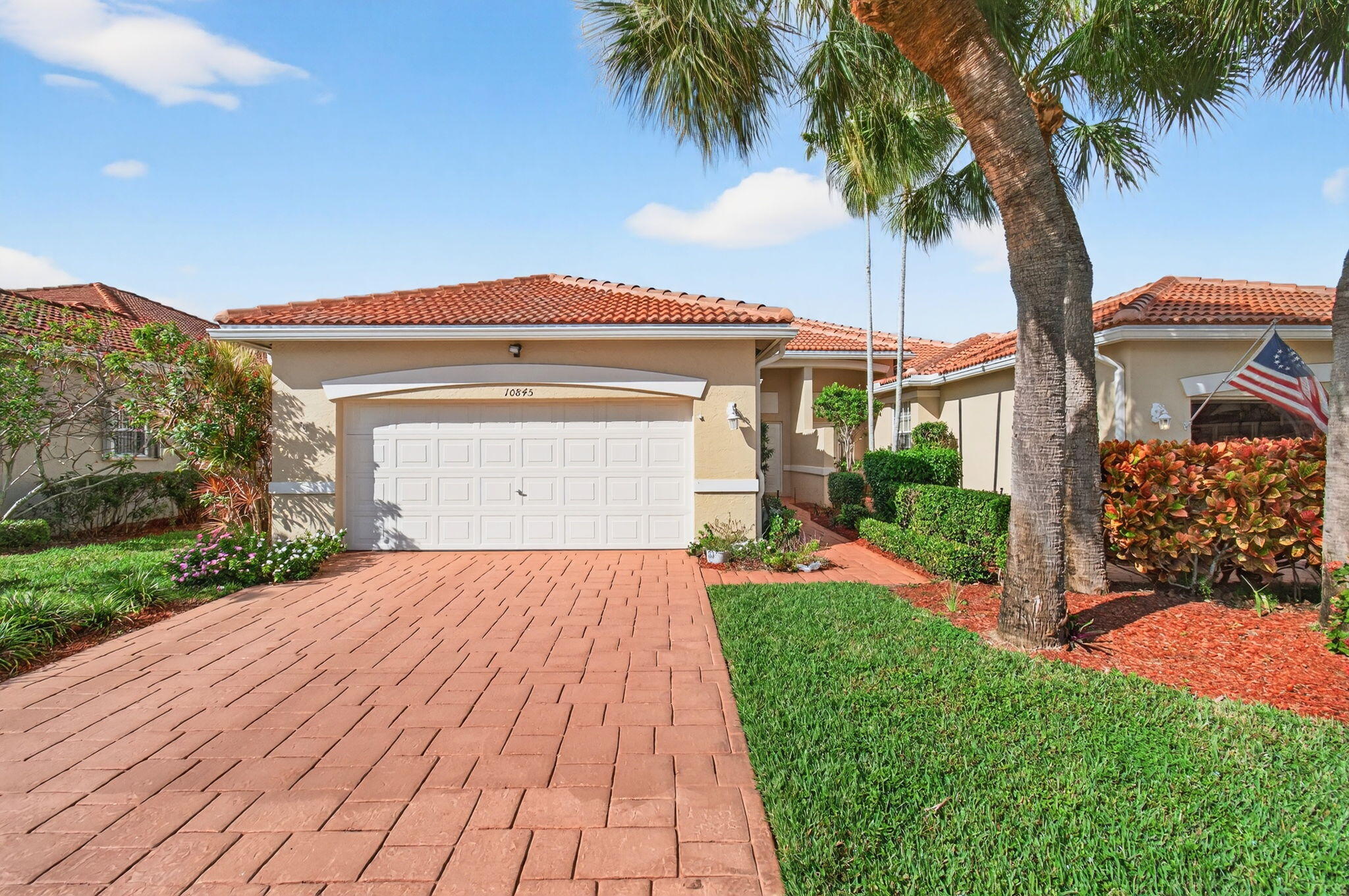 MAJESTIC ISLES-SUPER ACTIVE ADULT COMMUNITY. CLOSE TO PLACES OF WORSHIP.Discover a haven of comfort and elegance at 10845 Royal Caribbean Circle, Boynton Beach, FL. This stunning villa proudly stands as the largest model in its area, showcasing a blend of sophistication and practicality. With a new, sturdy roof, the property is built to withstand various weather conditions. Easily secure your vehicles in the spacious two-car garage, equipped with a newly installed hurricane-impact-rated door that highlights the house's dedication to safety and damage prevention.Explore the living areas further and noticeSavor the taste of pure, fresh water straight from a newly installed Culligan Water Filtration System, completing a well-rounded kitchen. Fitted with a solar panel tube and integrated high hats, the kitchen exudes a subtle ambiance to brighten every meal. The expansive living room and adjoining dining room provide the ideal setting for celebratory events, making your house the heart of family gatherings. Welcome to the serene neighborhood in the Florida room, offering uninterrupted views of the tranquil lake. Continue the outdoor extravaganza on the noticeably extended patio, measuring 10 x 32, a unique attribute only this property holds. Retreat after a long day into the generously spaced master bedroom, boasting a commodious walk-in closet and dual window setup for the ideal atmosphere. Attached is the en-suite master bathroom, offering two vanities, a Roman Tub for luxurious relaxation, a separate shower stall, and a neat linen closet. Encounter the guest bathroom, which is perfectly detailed with a complete wall painting and a comfortable tub, is the art of hospitality. Find functional storage in the third bedroom, which features a full closet and tiled flooring. Notably, the property foregoes traditional popcorn ceilings in favor of a chic tiled setup throughout the living room, family room, and kitchen, thereby enhancing aesthetics and longevity. Welcome to an ethically championed property, guaranteeing implicit comfort, style, and overall an unparalleled living experience. The Majestic Isles community is pet-friendly, so that you can bring your furry friends along. It is close to the fabulous new active lifestyle 16,000-square-foot Clubhouse, which features 2 Fitness rooms, Pickleball, Har-Tru Clay Tennis courts, Billiards, an Olympic-size Pool and jacuzzi, a Crafting room with Classes, a Library, Shows, Activities, and more. It is also near places of worship, shopping, restaurants, beaches, and airports! This community has a great deal to offer. Take advantage of this great opportunity! CLOSE TO PLACES OF WORSHIP. BRAND NEW ROOF HWH2018 AC2014 Brand new Culligan Water Filtration System in the kitchen.