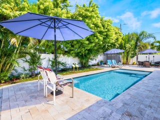 Updated Boca East home with 3 beds, (3rd B/R convertible Den) & 2 full baths, heated saltwater pool, and fenced backyard. Open-concept kitchen and living/dining with new stainless steel Wi-Fi appliances, Italian tile, and Travertine pool deck. Side parking for boat/RV with EV charger and carport. No HOA. A-rated schools. A few minutes from the beach. Available furnished or unfurnished. Upgrades: Impact Windows; AC 2020, roof 2013, 2019, pool heater 2023.
