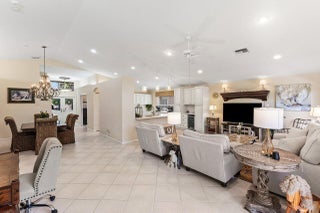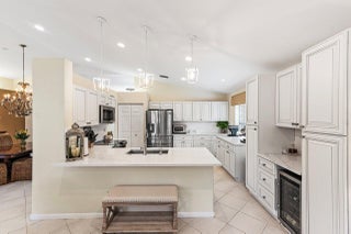 Behold this Coral model that sits on a meticulously landscaped, lakefront & private lot. You'll feel right at home as you enter through the new, impact-rated double door entry. This open and light floorplan features a gorgeous new kitchen, including all-wood cabinetry, quartz tops, buffet, and bar/additional pantry storage. All tile and wood flooring, hi-hat, and accent lighting adds to the luxurious ambiance. Step out back to your tiled and screened-in patio, and enjoy some shaded/covered space to relax or entertain guests. Valencia Lakes is a premiere GL homes community which offers an award-winning 55+ lifestyle experience that has been recently been remodeled in 2024. Discover a full-amenity recreational facility that rivals some of the most prestigious resorts in the area.
