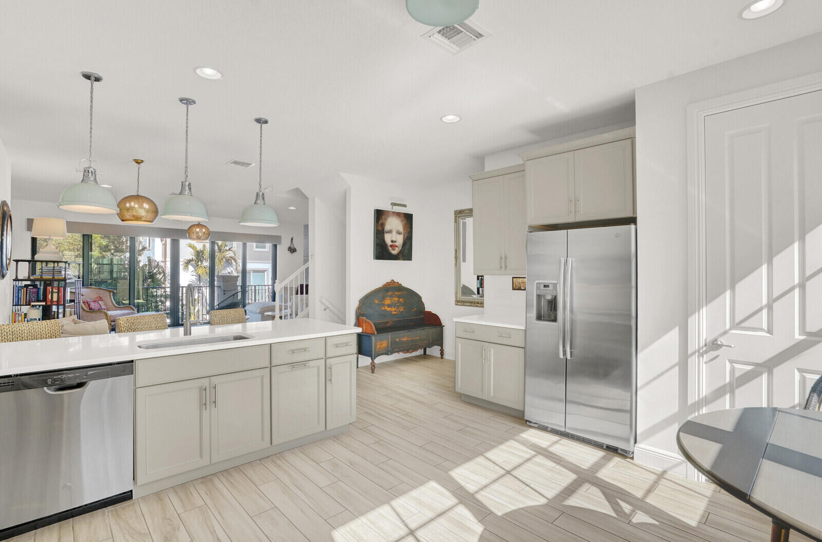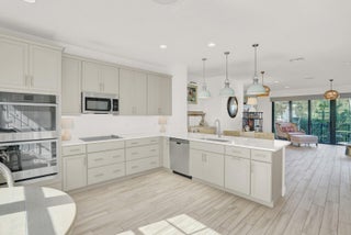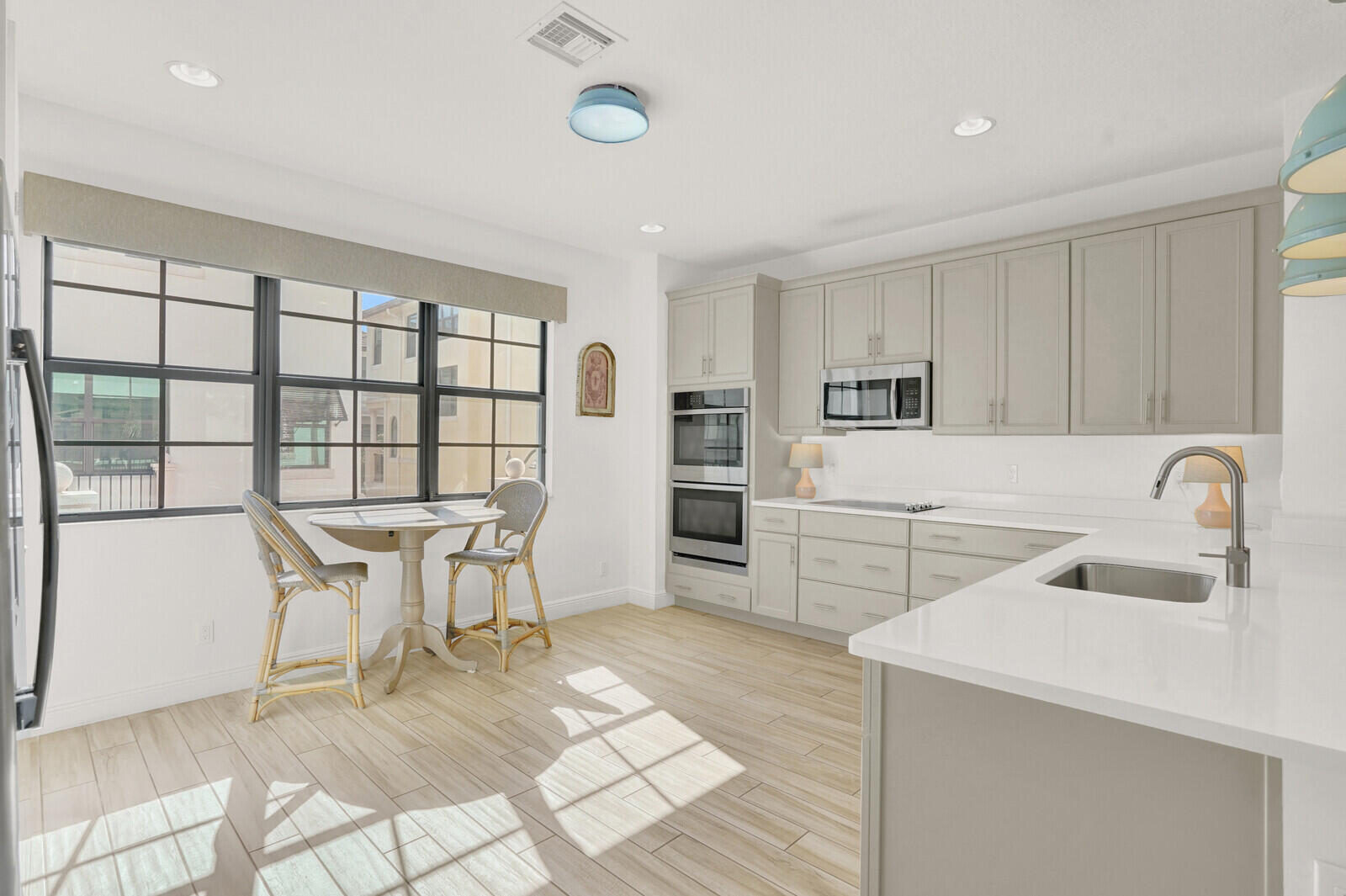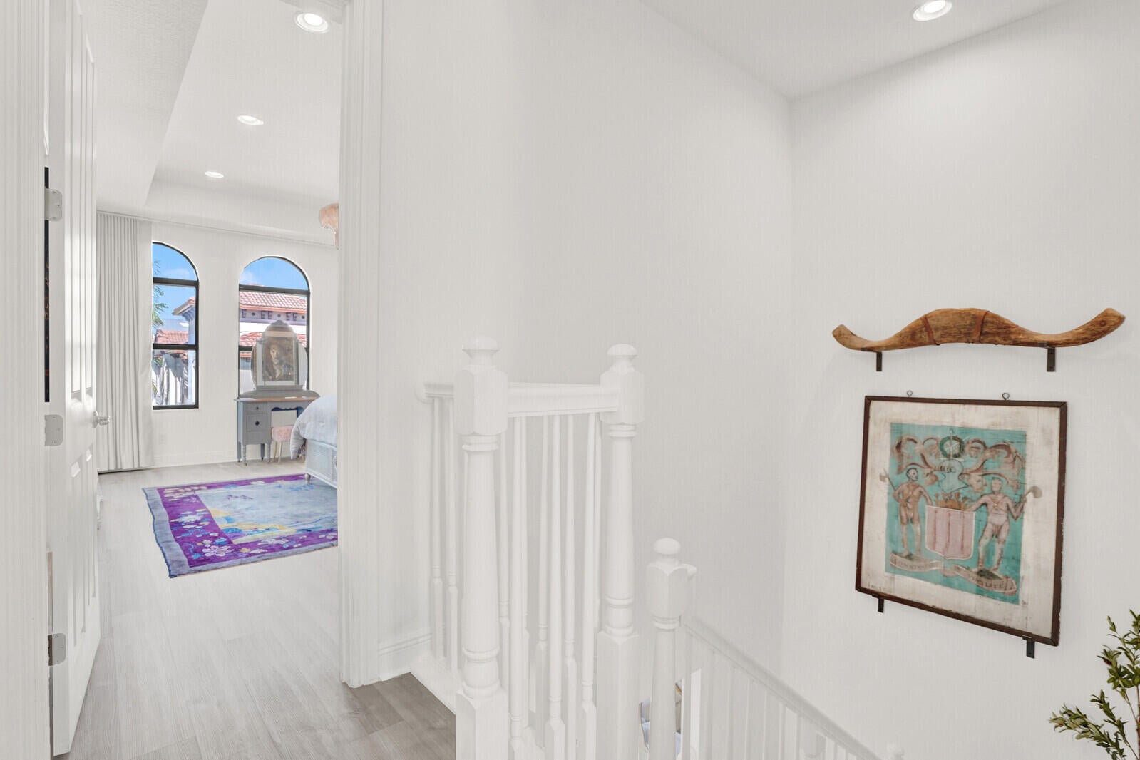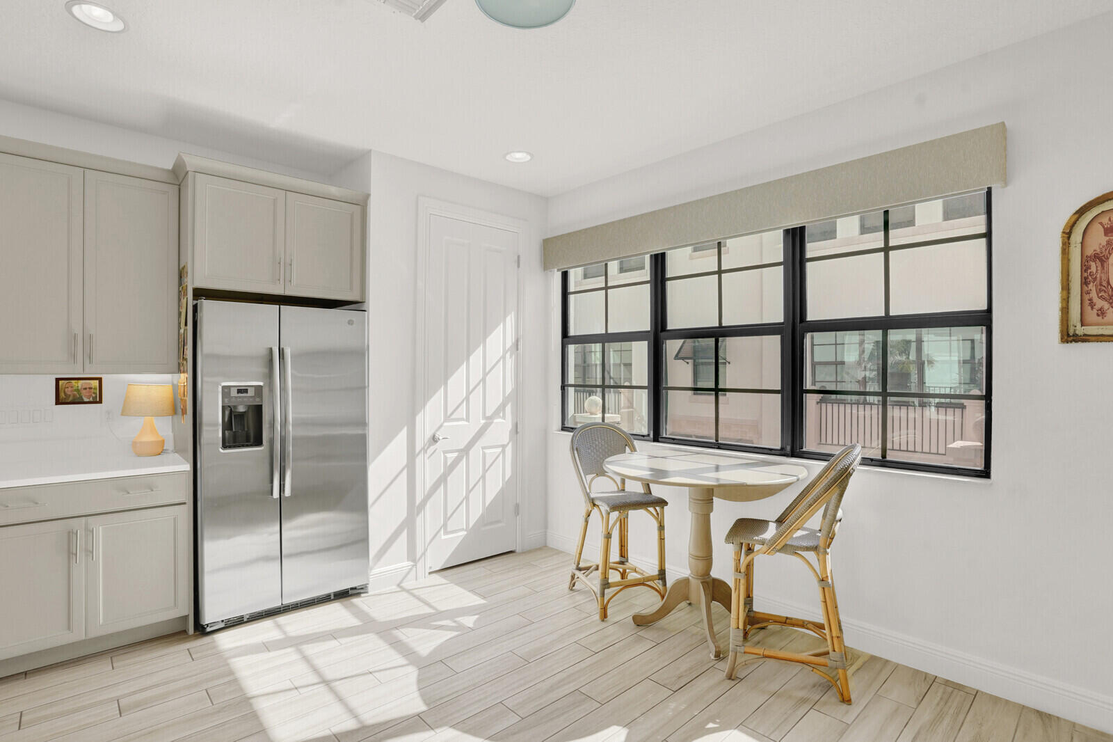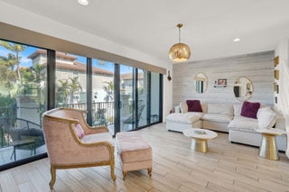 This beautifully designed townhome offers more than 2,400 square feet under air and a total of 3,294 square feet of thoughtfully crafted living space, blending modern comfort with elevated coastal style. Upon entering, you're welcomed by a versatile flex space that functions perfectly as a home office, fitness room, or additional living area. Wood-look tile flooring, custom window treatments, a convenient half bath, and a fenced private patio enhance both style and practicality.Upstairs, the main living area unfolds in a bright, open-concept layout highlighted by soaring ceilings and refined finishes. A dramatic wall of windows fills the space with natural light and opens to a private, oversized balcony, ideal for morning coffee, evening cocktails, alfresco dining, or simply enjoyingthe breeze coming off the intracoastal waterway. This seamless indoor-outdoor connection expands the living space and creates a warm, welcoming setting perfect for both entertaining and everyday relaxation. The dream kitchen is well appointed and features stainless steel appliances, including double wall ovens, along with a snack bar, an eat-in dining area, a pantry, and custom cabinetry topped with stone countertops. A stylish guest half bath is thoughtfully positioned nearby. The upper level is finished with luxury vinyl plank flooring throughout the stairs, landing, and all bedrooms. The primary suite impresses with volume and tray ceilings, abundant sunlight, a decorative feature wall, custom-built closet system, and its own private balcony. The spa-inspired primary bath offers dual sinks and an oversized shower with a rain-style showerhead. Two secondary bedrooms sit opposite the primary for enhanced privacy and feature plantation shutters, custom closets, and convenient access to the shared guest bath. Additional peace of mind comes from full impact-rated glass throughout the home, along with newer air conditioning system and water heater ensuring efficient, reliable performance. Located within Casa Del Mar, a gated and pet-friendly community, residents enjoy a resort-style lifestyle complete with a sparkling pool, private community dock, and breathtaking water views along the scenic Intracoastal Waterway. The property is just moments from vibrant Delray Beach, offering fine dining, boutique shopping, lively entertainment, and pristine coastal experiencesall while being a short drive to both PBI and FLL airports. This exceptional location and design combine to deliver a truly elevated blend of style, convenience, and livability within the heart of Southern Palm Beach Count's premier coastal corridor.