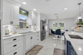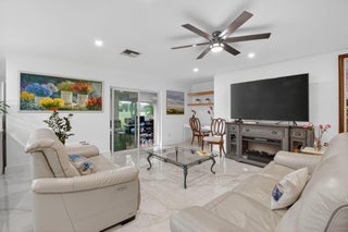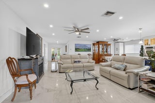 Welcome home! Come see this beautifully updated 3 bedroom 2 bath home with 2 bonus rooms & a 2 car garage on the golf course! Enter to a foyer entry &open layout with gorgeous updated large stone-look ceramic tiles. An entertainers dream, see the updated kitchen with quartz counter tops, KraftMaid cabinets, a walk in pantry & stainless steel appliances. The kitchen's breakfast area overlooks the golf course. The primary bedroom has a walk in closet & an additional large closet. Theprimary bathroom has dual vanity & a large shower. Guest bedrooms have ample closet space. The guest bathroom has a jacuzzi tub. 2 bonus rooms overlook the golf course through impact windows. Outside enjoy the summer kitchen with sweeping golf course views. New roof 2025 (flat & tiki 2018). A rated schools.