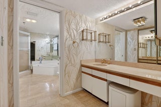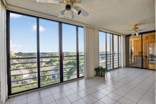 High-floor condo in the beautifully maintained Regency at Boca Pointe community. This 3-bedroom, 2.5-bath home has been lovingly cared for by the owner and offers a huge wraparound, glass-enclosed patio with tranquil treetop and garden views. Enjoy the rare benefit of two assigned covered parking spaces. The third bedroom is currently an open den but can easily be converted back to a private bedroom. Tile floors run throughout the main living areas, with carpet in both bedrooms. The spacious living room features a wet bar--perfect for entertaining. Additional highlights include a large in-unit storage closet and an A/C replaced in 2020. Ideally located close to the community pool and clubhouse. A wonderful opportunity to make this inviting condo your own!