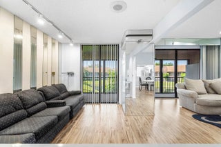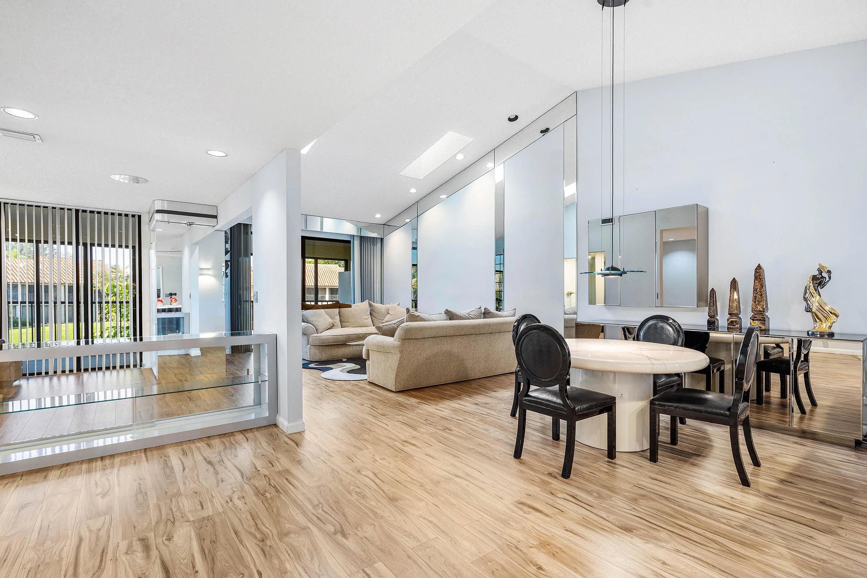 Welcome to 7977 La Mirada Drive in Boca Pointe. This spacious two-story home features an open living and dining area with high ceilings and abundant natural light. The kitchen includes white cabinetry, stainless appliances, and a breakfast nook with garden views. The third bedroom has been converted into an office/den currently used as an extra seating and entertainment space. Enjoy a large enclosed Florida room with serene lake and garden views. Located in a beautiful gated community with optional club memberships.
