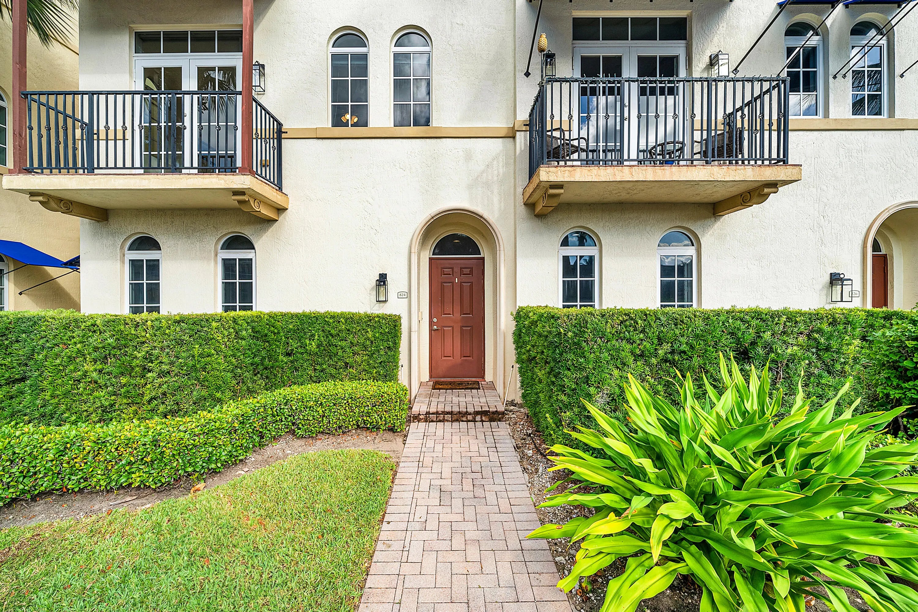 Inside the exclusive, gated, waterfront community of Estancia is this spacious, southern facing, 3-story end unit townhome on the Intracoastal Canal. The well designed floor-plan features 3 bedrooms & 3.5 baths, offering plenty of space for leisurely living as well as entertaining. The 1st floor features a private guest bedroom, with a full bath, perfect as an office or for visiting guests. The main living area is situated on the 2nd floor, consisting of the living room, dining room, kitchen & powder room. The updated kitchen is large and adorns a wine fridge, Bosch refrigerator & walk in pantry. The 3rd floor houses the primary suite and a 2nd guest bedroom. The Primary Suite has a huge closet and dual sinks, as well as a separate tub and shower. This home has generous ceiling