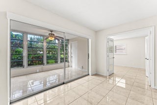 Lovely two bedroom/2 bath corner unit on the first floor with easy access and a beautiful garden view. Amazing, downtown location. 5 minutes to Mizner Park and all of the downtown restaurants, shopping and entertainment. Walking distance to 5th Avenue shops (Publix). The beach is a ten minute bike ride. Light, bright, open floor plan. Tile floors throughout. Plantation shutters. New light fixtures and fans, Updated kitchen with stainless steel appliances. French doors lead to the primary suite that features a huge walk in closet and an updated en-suite bathroom. Enclosed patio that can act as an extra room or a lovely lanai. BVE is a 55+ community featuring a large clubhouse with a library and exercise room, huge community pool and on-site mgmt.