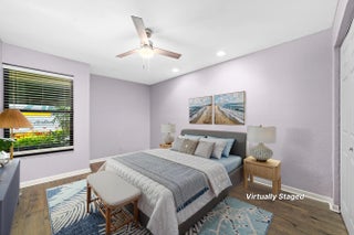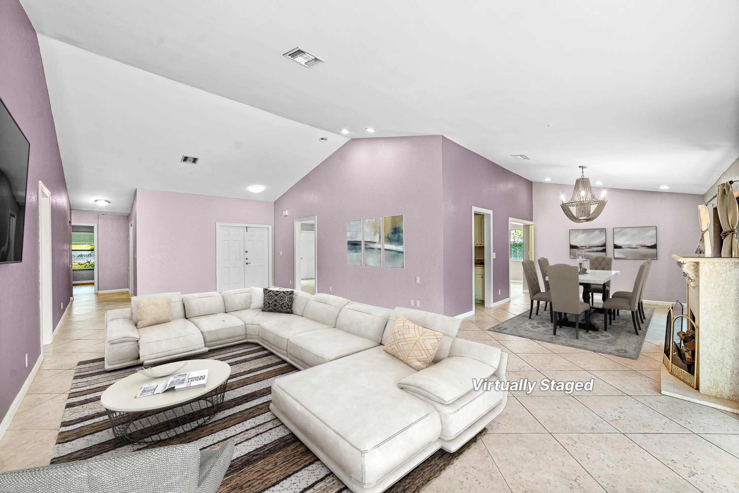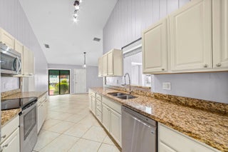 Spacious and beautifully updated, this 3-bed, 2-bath corner villa offers a bright and inviting layout with vaulted 12-ft ceilings, recessed lighting, and an easy-flow design. Recent improvements include impact windows and luxury vinyl flooring in the bedrooms. The upgraded kitchen features premium wood cabinetry, granite countertops, stainless steel appliances, and an under-mounted double sink. The bedrooms are generously sized, and both bathrooms have been renovated, with the primary suite offering a walk-in closet and an ensuite bath with dual vanities, a Roman tub, and a separate linen closet.