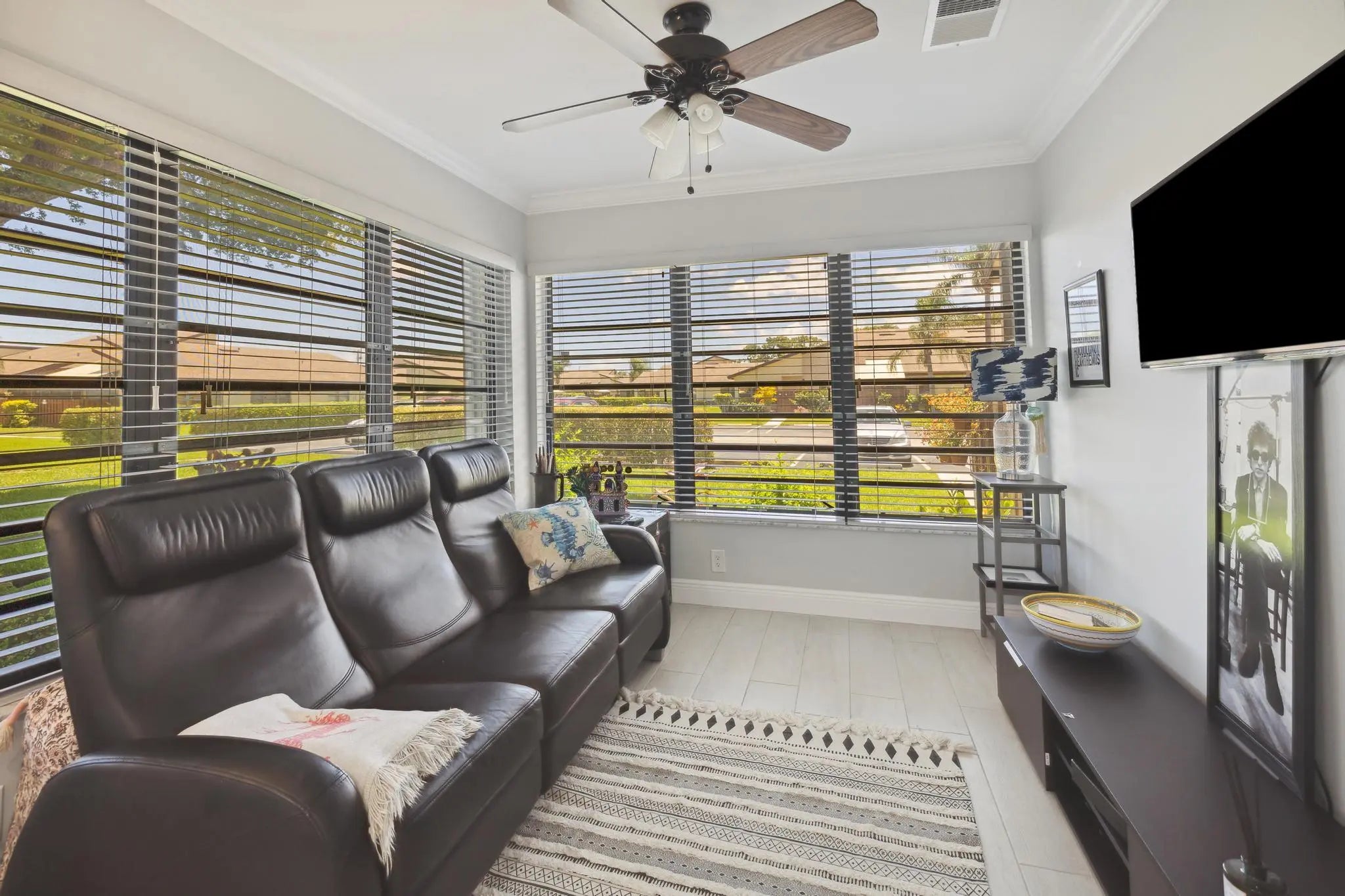 Completely remodeled, 2 bed 2 bath villa w/ a den, located only 5 miles from the beach and the downtown Delray area. As you walk in, you will see a spacious living room, dining room and an open kitchen with quartz countertops, solid wood cabinetry, SS appliances and a large den that can be used as either an office or even a 3rd bedroom. Spacious bedrooms with lots of closet space, a full-size washer and dryer, recess lighting, crown molding and tile throughout! No popcorn ceilings or carpets here! Full Accordion Shutters! Enjoy your very own private patio and lush landscaping throughout the community! This is an active 55 plus community with lots of amenities. HOA fee of $668 includes water, cable, internet, landscaping, bldg insurance, roof, exterior, reserves and community amenities.