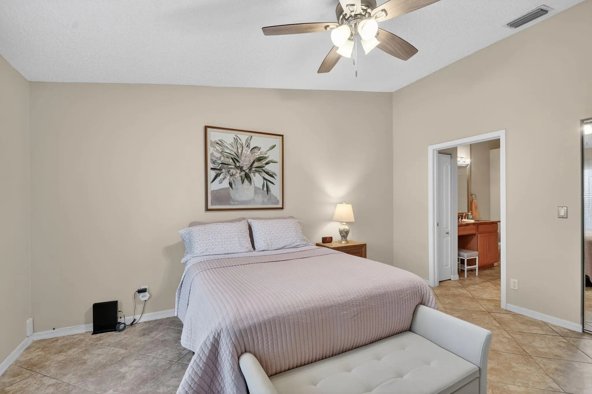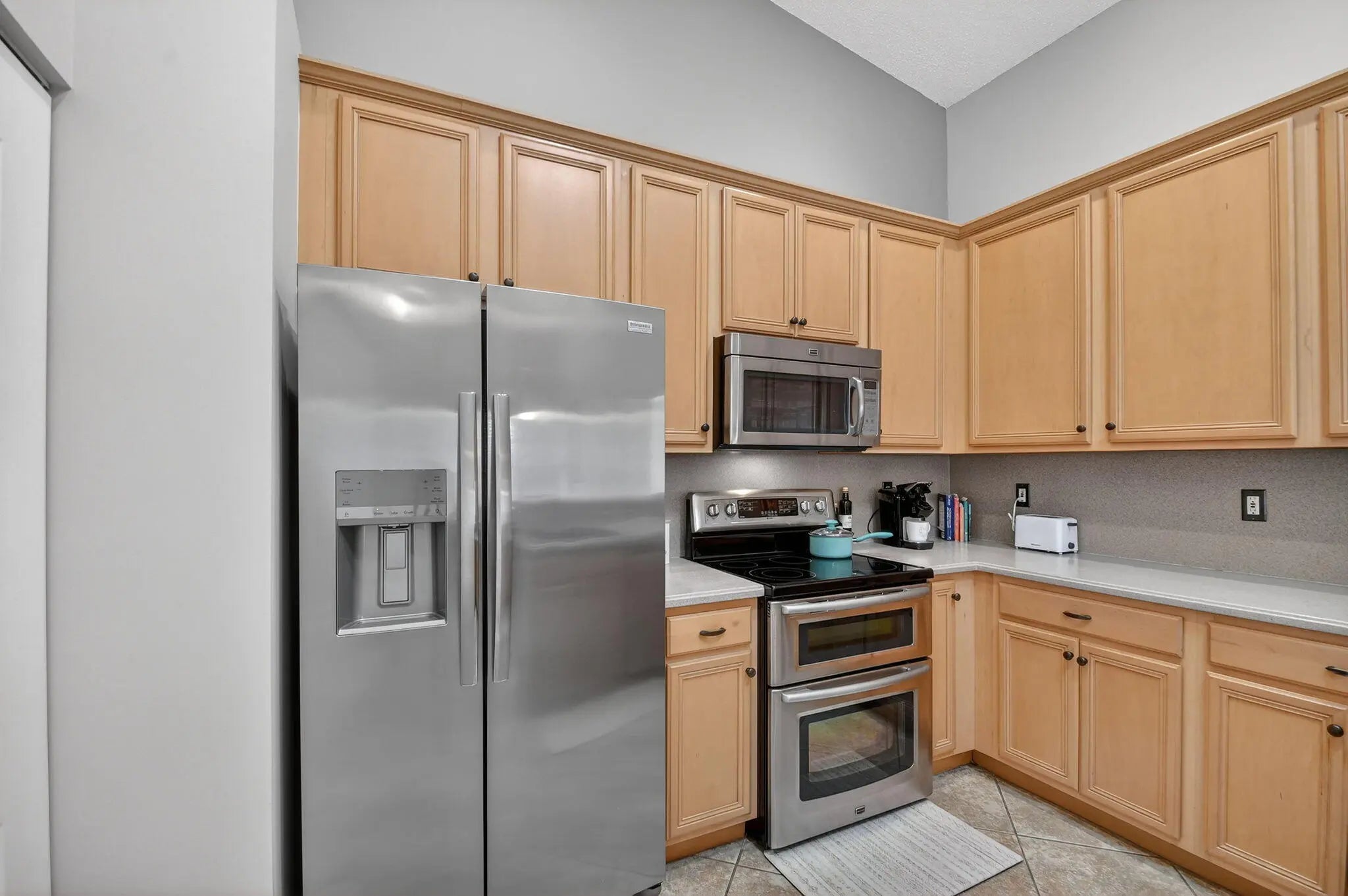 This very desirable end-unit villa is open,bright,& tastefully decorated in neutral tones.Tile flooring throughout.The 3rd bedroom can also serve as a den or office,& the 2nd bedroom features built-in closet organizer.The kitchen is highlighted by a skylight,stainless steel appliances,& a brand-new refrigerator.The spacious primary suite has a walk-in closet w/ a new ceiling fan & bath w/ walk-in shower.The expansive great room featuring both living/dining spaces includes a built-in bar,for entertaining.Step outside to your private,covered,& screened-in patio for year-round enjoyment.new smoke detectors The community has a new clubhouse,a well-equipped fitness center, two pools,pickleball & tennis courts,& a variety of clubs & activities.Conveniently located near shopping,Turnpike,& more.