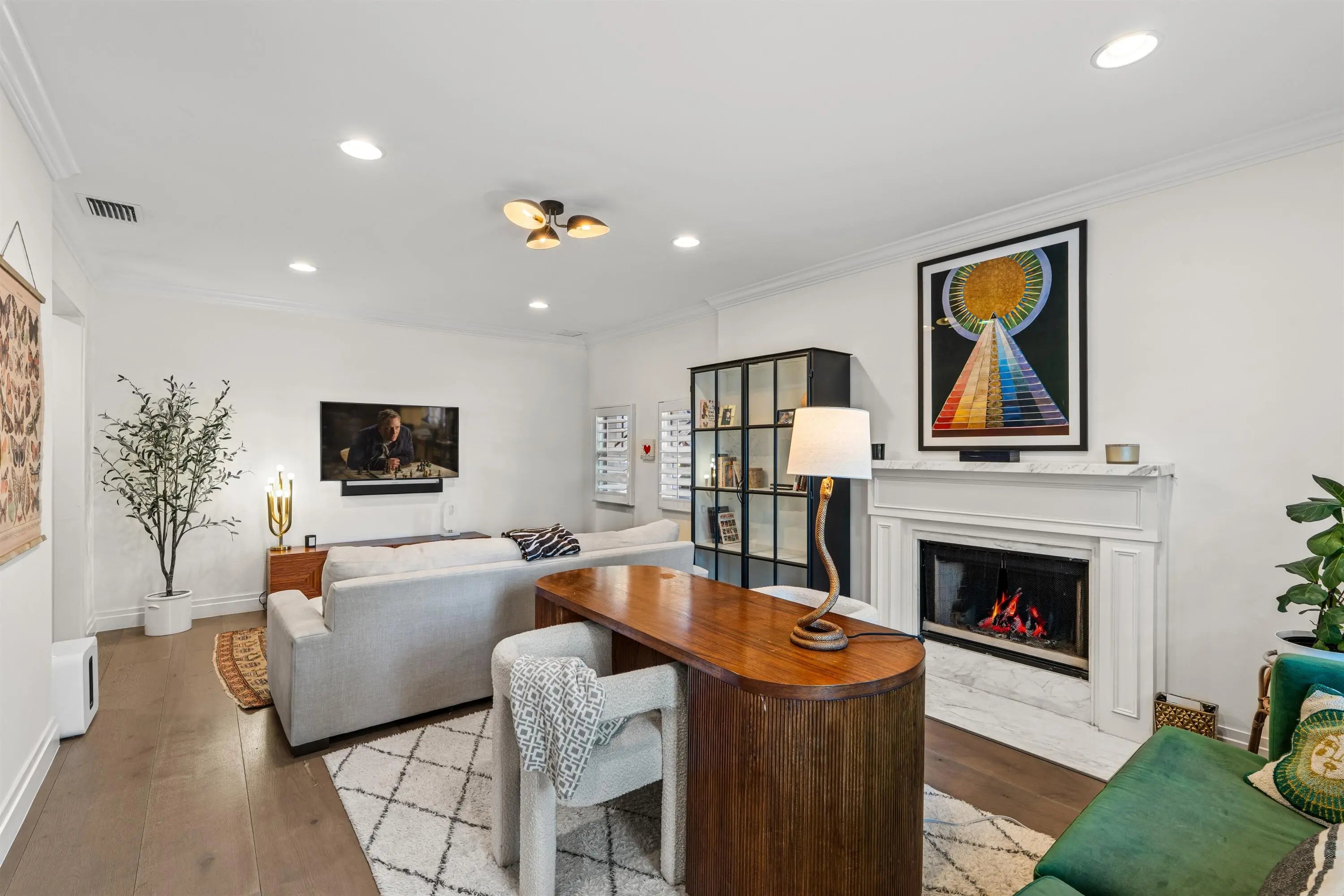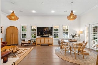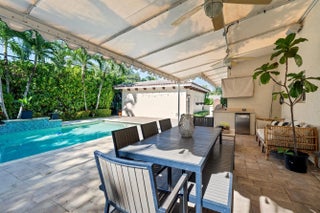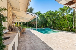 This delightful residence has been skillfully redesigned to join all the elements of a California vibe with South Florida luxury living. The project achieved exactly the right blend of style, detail and quality. A majestic exterior elevation is poised against a gracious circular drive on a lush, oversized lot with privacy hedge and mature landscaping. This completely hurricane resistant residence features exterior block walls on the first and second levels as well as concrete 2nd floors also included are Impact windows and doors. Meandering Chicago brick paths, a canopy of oaks trees, lights gently illuminating an expansive span of oaks trees and perimeter palms, a backyard pre-wired for entertaining sound, designer tasseled awnings, a refreshed resort-style pool/deck, smart keyless entry
