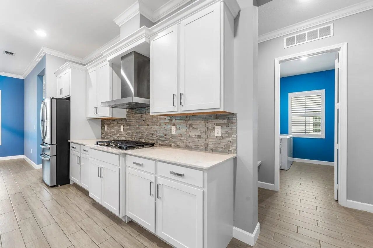 Welcome to this beautifully appointed single-story residence in the sought-after master-planned community of Arden. Situated on a premium corner lot, this 4-bedroom, 3.5-bath, 3,001 sq ft smart home offers an elevated level of comfort, craftsmanship, and thoughtful design. From the moment you enter, you are greeted with natural light, refined finishes, and a floor plan that blends luxury with everyday functionality.The gourmet kitchen serves as the heart of the home and features quartz countertops, a generous island for gathering, 42'' cabinetry, a gas range, stainless steel appliances, and a custom-designed vent hood. An upgraded walk-in pantry adds exceptional storage, while a versatile nook provides the perfect space for a future coffee station or prep area.