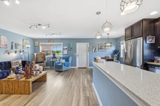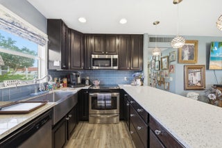 Absolutely stunning, fully updated ground-floor corner villa located in the prestigious 55+ Kings Point Golf & Country Club. This must-see residence offers tranquil, serene water views from the living room and is filled with natural light, creating a bright coastal-inspired atmosphere throughout. Enjoy complete peace of mind with a brand-new roof and no assessments. The beautifully redesigned designer kitchen features stainless steel appliances, elegant quartz countertops, and a striking tiled backsplash, making it perfect for both everyday living and entertaining. Throughout the home you'll find no popcorn ceilings, all updated lighting fixtures, and recessed lighting that enhance the clean, modern feel.The spa-like bathroom has been completely renovated and showcases