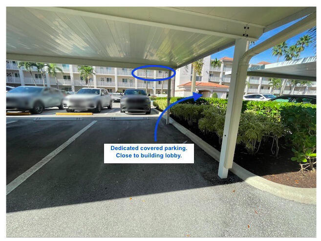 Enjoy the convenience of a DEDICATED COVERED PARKING SPACE with this stunning two bedrooms PLUS DEN condo. Two lavish bathrooms. 55+ gated community in Huntington Pointe, Delray Beach.This 3rd floor open concept condo is the ideal location to enjoy the beautiful large lake with fountain and creatures. Natural light. Condo features: 32 in polished, porcelain tiles throughout. New soft close, wooden, Shaker cabinets w/ dovetail drawers new s/s appliances quartz countertops w/ waterfall edge seats 4 modern glass fan lights w/ remotes 3 storage pantries laundry section w/ full size washer and dryer primary bathroom has DOUBLE SINKS screened, glassed balcony to enjoy drinks or meals.Walk to Clubhouse with CAFE, fitness center, pickleball, pools, and much more.