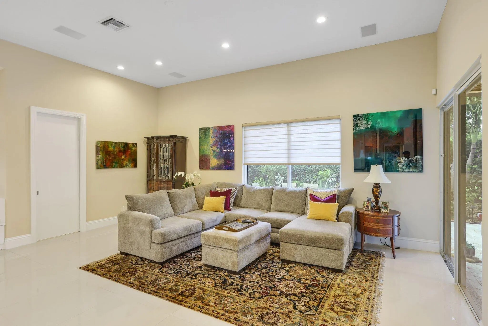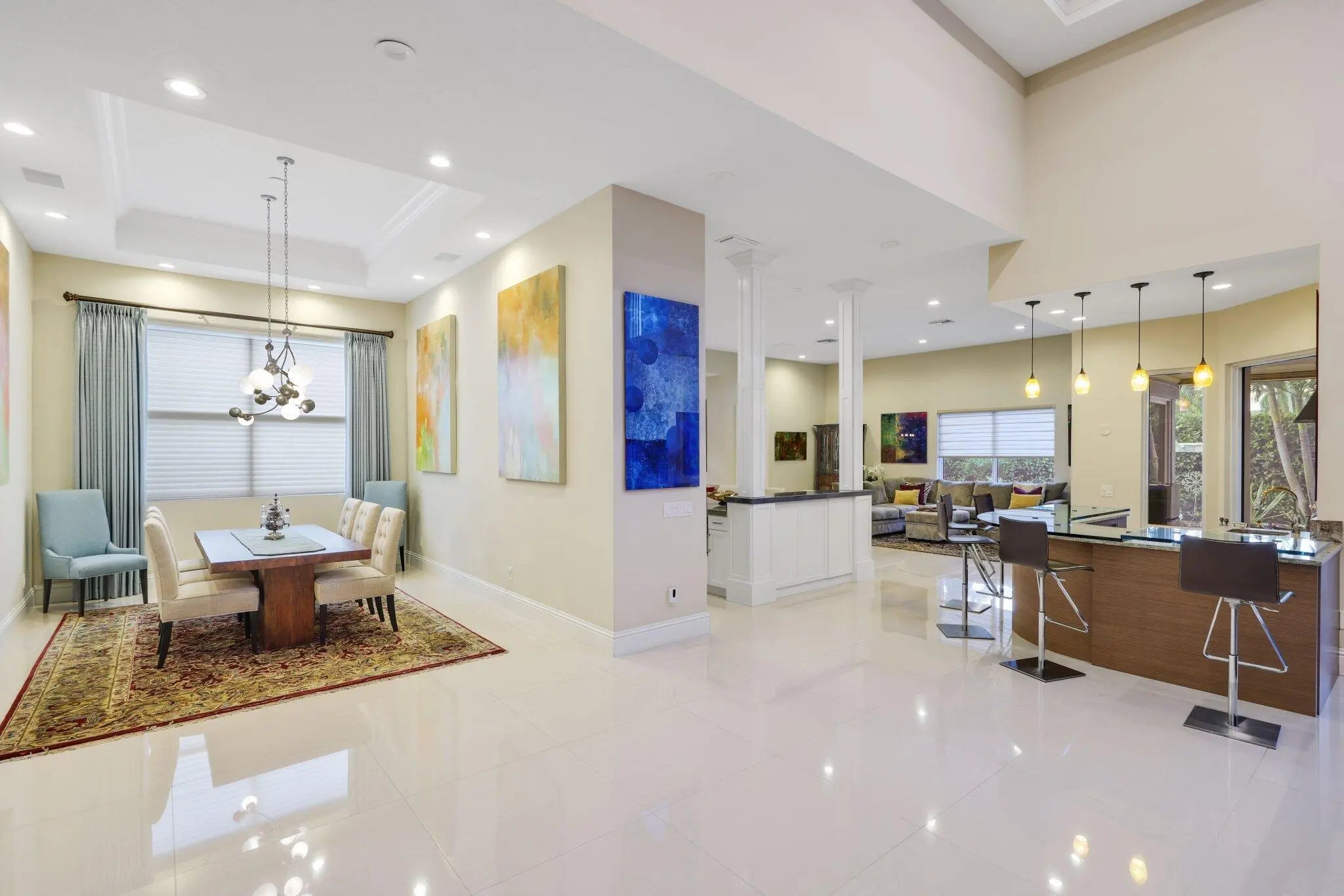 Newly Priced. Totally renovated 5 Bedroom residence with office/convertible 6th Bedroom situated on the 13th fairway in Boca Grove. This home offers an open floor plan ideal for entertaining, featuring volume ceilings and a custom bar. The chef's kitchen includes a 5-burner gas cooktop, double ovens, and breakfast area with banquette. The spacious primary suite boasts his/her baths, custom closets, and views of the pool. Two additional ensuite bedrooms complete the first floor, with two more bedrooms sharing a large bath upstairs. Enjoy this backyard retreat with fully screened patio, heated saltwater pool, and abundant lounging space. Impact glass, a brand new metal roof, and generator complete this offering. Conveniently located near great shopping, fine dining and houses of worship