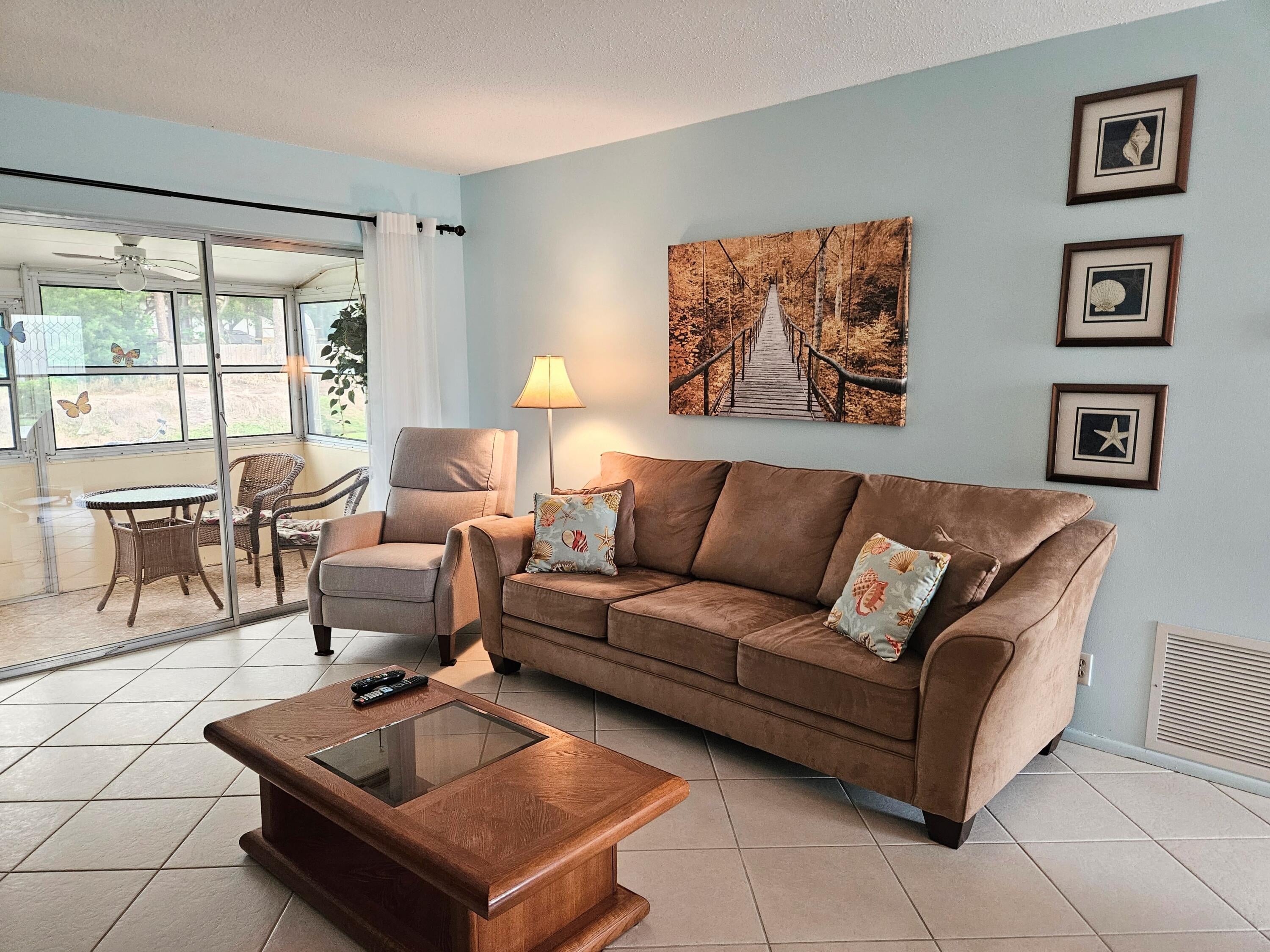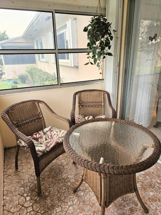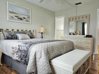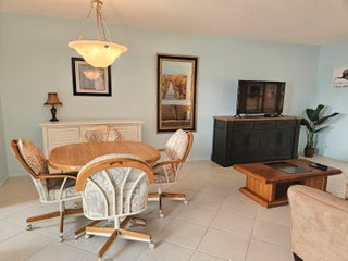 Waterfront view furnished 1/1/1 in 55+ active adult community of Dudley.Impact windows with accordion shutters. Updated electrical box 2021. Newer A/C 2022.Electric Hot Water heater 2017.Updated bathrooms.Dudley community offers wide sidewalk, heated pool, clubhouse with auditorium , fitness room, library, shuffleboard, woodshop and bocce court. It is located centrally close to shopping, restaurants, 15 mins from Palm Beach International airport and 20 mins from the beach.