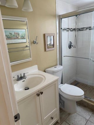 Tucked away in the welcoming Stirling Village 55+ Intracoastal community, this bright first-floor corner condo offers easy coastal living just off the Intracoastal and within walking distance to Boynton Beach's shoreline. As an end unit, it features abundant natural light and convenient, stair-free access. The home offers two bedrooms, one and a half baths, and an open living and dining area with a comfortable, functional layout. The updated kitchen makes everyday cooking simple, while central air and an in-unit washer and dryer add everyday comfort and convenience. Offered furnished and available for annual rental only. Residents enjoy access to a community pool, clubhouse, and social activities in this well-maintained, peaceful community known for its laid-back Florida lifestyle