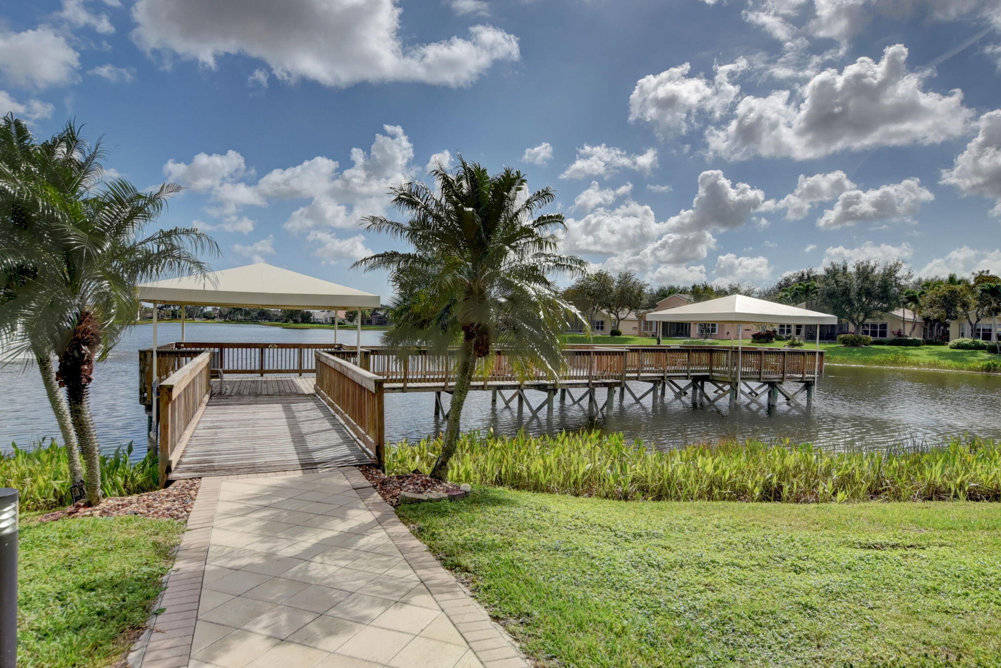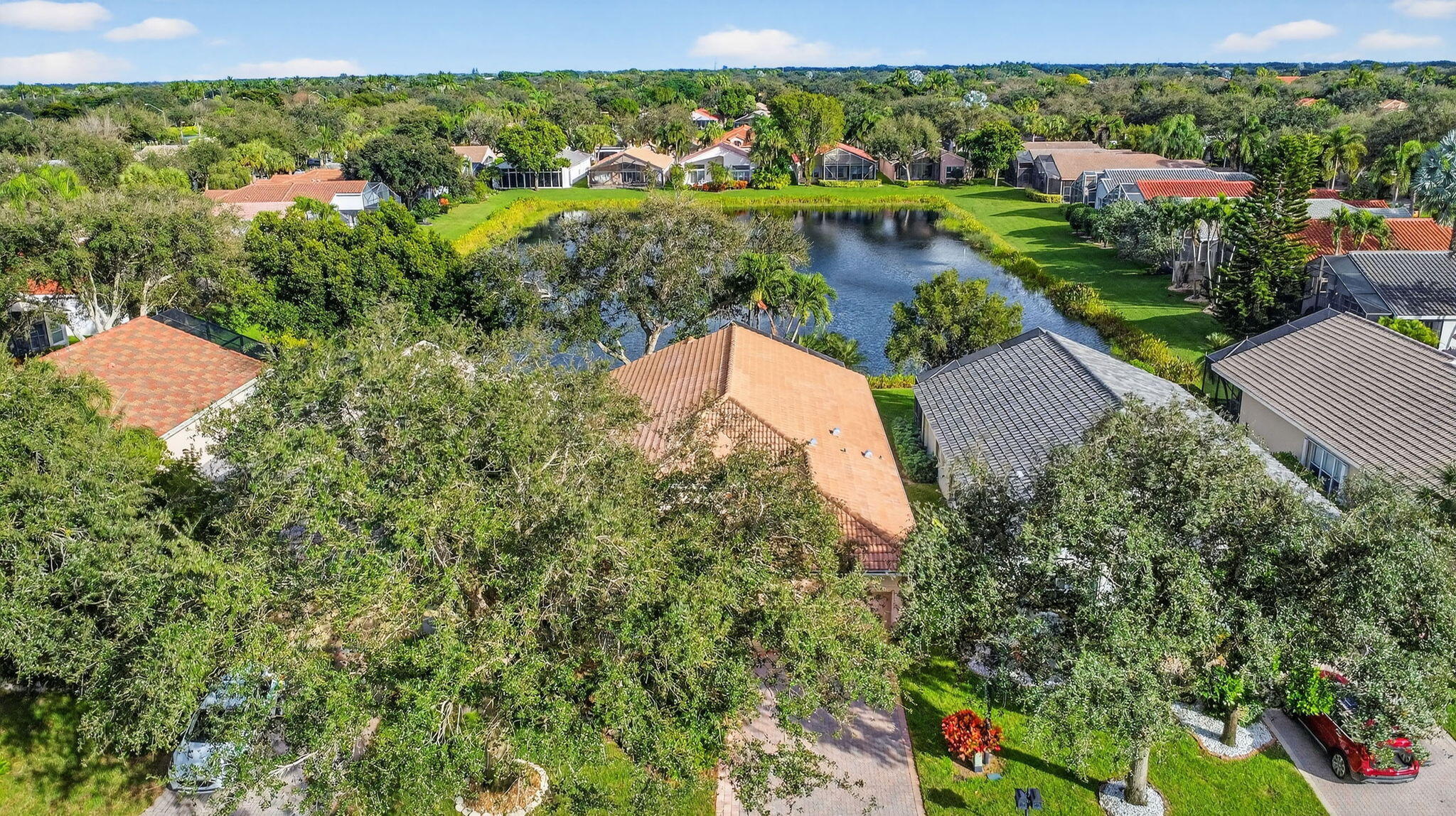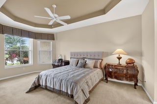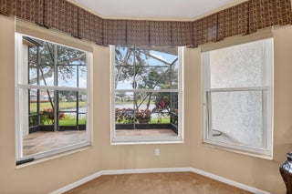 New Roof Installed Nov 2021. Beautiful Rare Persian Model w/highly desired 3rd Bathroom, sits on the VERY BEST PREMIUM Middle of the Lake Lot. Home equipped w/Accordion Hurricane Shutters. This is a true 3 bedroom/2.5 bath/2CG/SF. There are closets & doors in each bedroom. Third bedroom complete with Queen size built-in Murphy bed & wall to wall desk w/shelves & drawers. Upgrades galore to include; AC changeout 10/2021, LED recessed lighting, window tint, etched transom & sidelight to match, upgraded newer LG top of the line W/D. All three bedrooms offer custom fitted closets. New flooring in main living area. Gourmet Kitchen complete w/granite countertops, large sink, auto-close drawers, pull-outs, build in pantry & more. Don't miss this one. Won't Last Long.Large Covered & Screened patio to enjoy sunrise & sunset. Home complete with upgraded security system owned which include motion detectors. Oversized Primary suite w/black out shades & large Custom-Fitted Closets w/built-in safe. Split floor plan. Seller including garage refrigerator and furniture currently in home. Come live the country club lifestyle without paying country club fees. Residents enjoy a renovated clubhouse, fitness and wellness center, tennis & pickleball, Olympic size pools, on-site café, plus year-round activities, clubs galore & anything you might be interested in. This location is close to restaurants, grocery store/s, shops, golf, beautiful beaches, shows & so much more! This home is priced to sell quickly! Pet friendly.