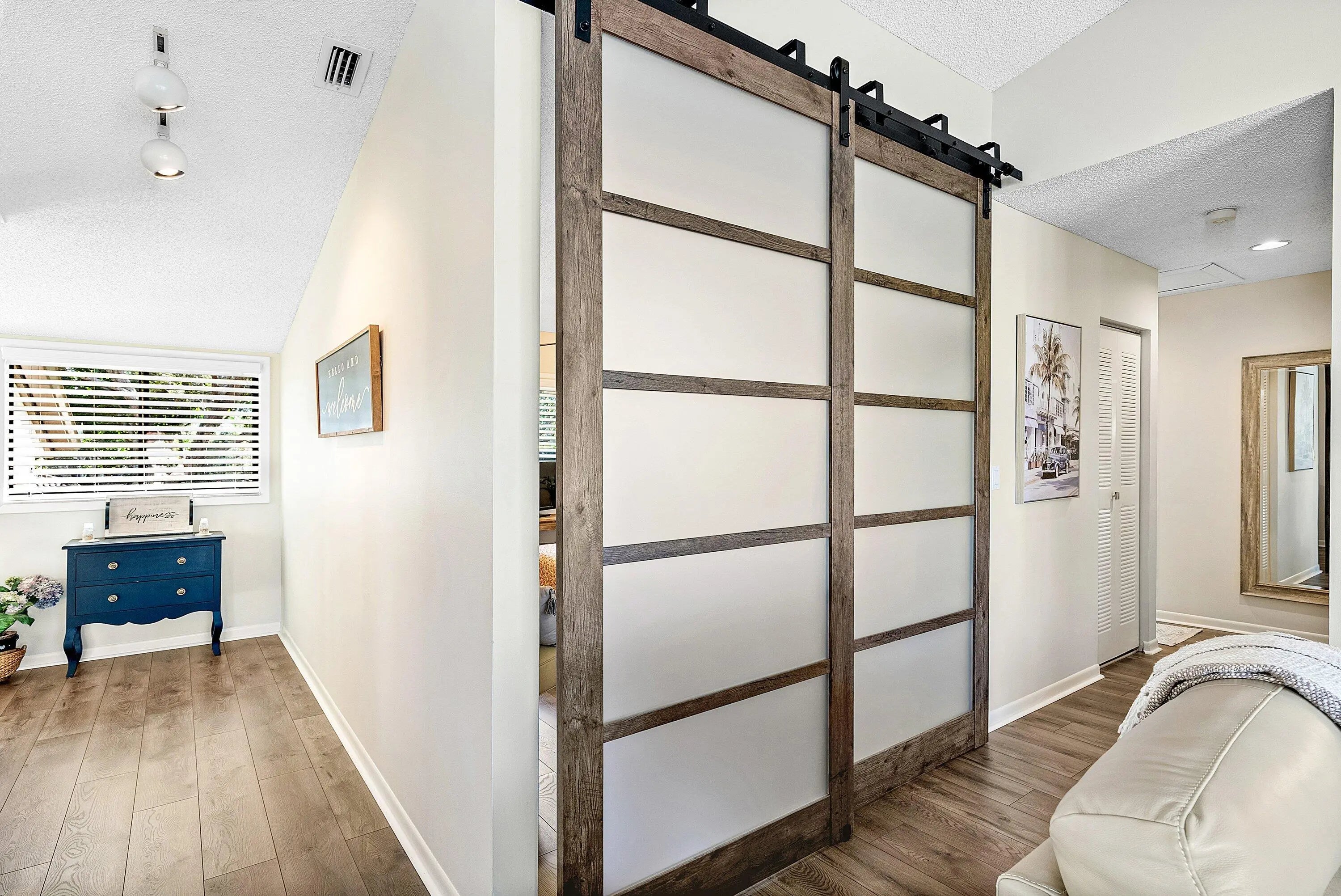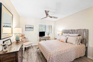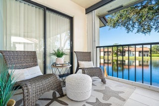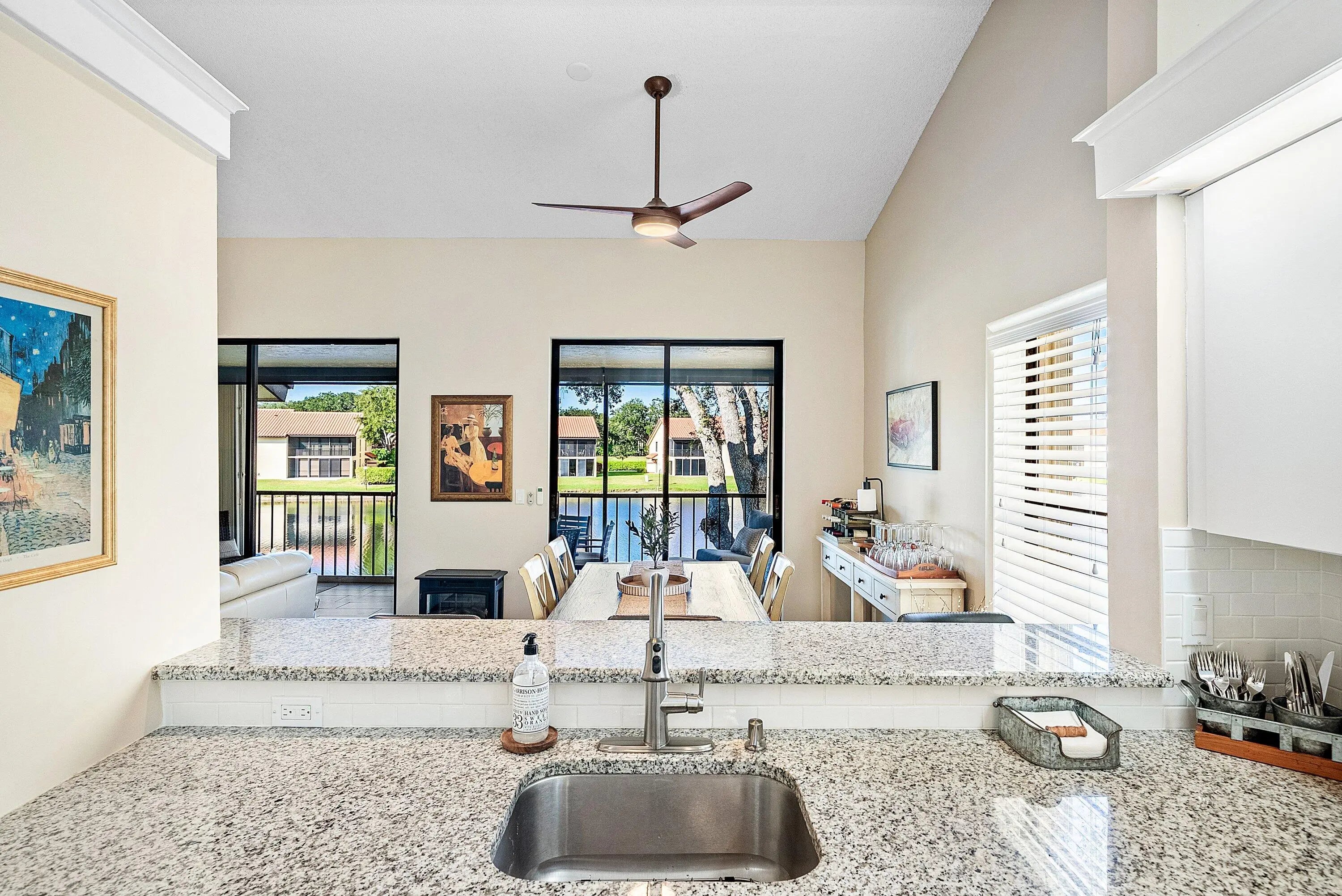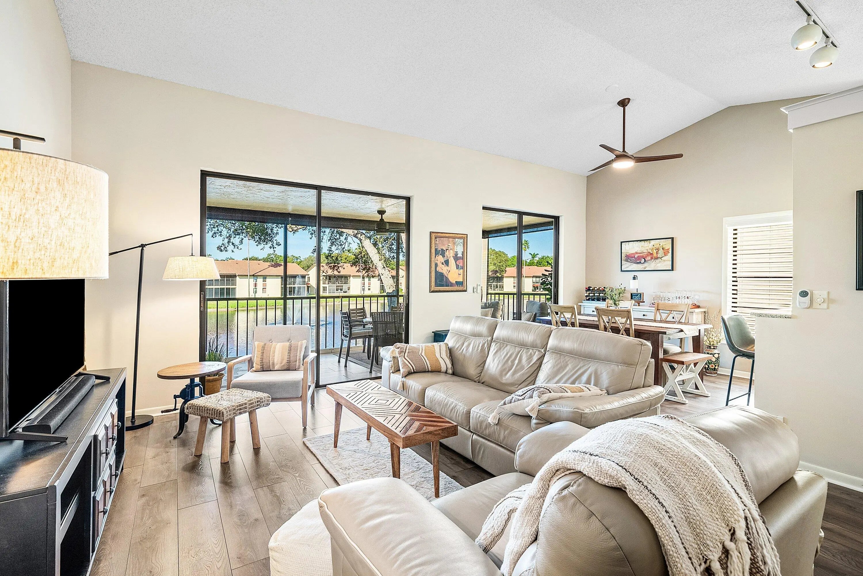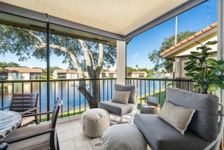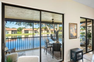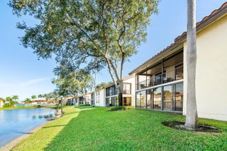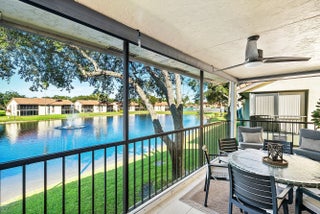 Lovely lakefront REMODELED corner unit in desirable 55+ Palm Chase Lakes. Steps to amenities and a SHORT walk to worship makes this one a must see! Move-in ready. Light, bright and open is what you immediately feel with the soaring ceilings and premium LAKE VIEW. Wood plank laminate flooring throughout - no carpet! Kitchen has been thoughtfully upgraded with subway tile backsplash, granite counter tops, porcelain tile floors, newer appliances and BRAND NEW dishwasher. Eat-in breakfast area is the perfect place for coffee in the morning. Great room is open to the kitchen and dining area allowing perfect entertaining flow. Enjoy the large screened-in lanai w/ remote, retractable blinds overlooking the glistening lake.