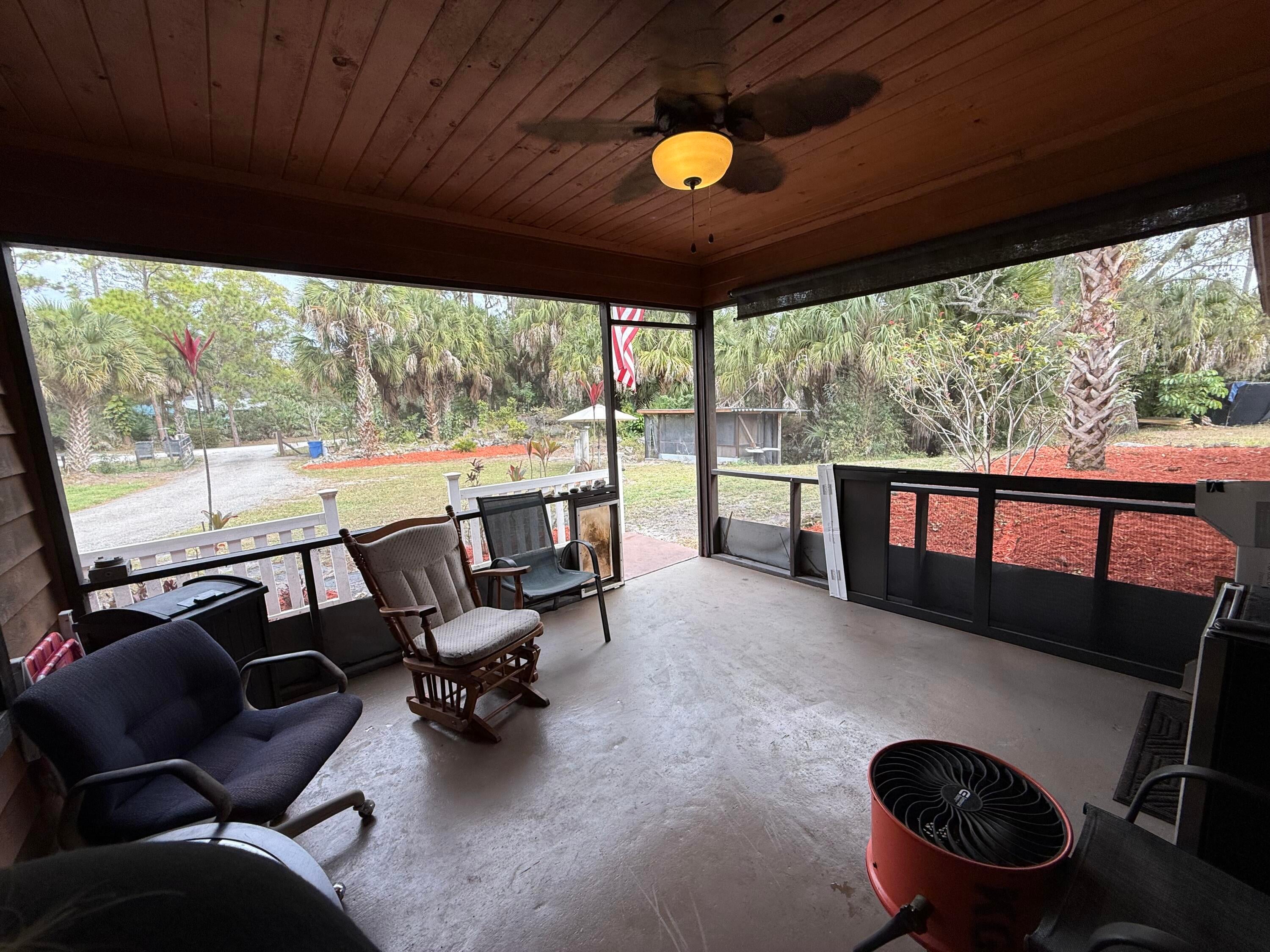 Spacious 4BR/2BA custom cedar home on nearly 2 acres in desirable Loxahatchee. Enjoy peaceful country living with great neighbors and no HOA! Features include a circular driveway, fully fenced yard with 3 gated entrances, new roof, new impact low windows/sliders, remodeled master shower, newer AC, and freshly painted bedrooms. An open floor plan offers bright, inviting living spaces filled with natural light. Outdoor features includes wraparound sidewalk, above ground pool, large fire pit, and fruit trees (mango, banana, coconut) surrounded by palm and pine trees for added privacy. Plenty of space for RV parking, farm animals, and future expansions, this home offers endless possibilities. Quiet, private, and thoughtfully updated, it's exactly what you've been looking for-- Again, NO HOA.