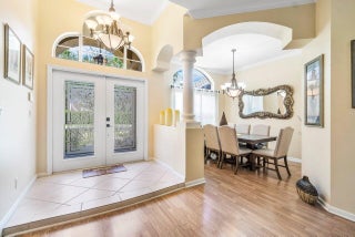 Beautiful home looks like a mini Estate home in a desirable sought after private neighbor hood which is gated and the Seller pays the HOA fee. All homes and landscapping are kept up and such a nice feeling to live in this development. As you enter the Double doors, great layout, split plan, newer updated kitchen with new appliances 2022. Extremely clean and well kept. Master bedroom has 2 closets, roman tub, his/her sinks, shower and french doors to the private covered patio. Formal living room, dining and family room and kids rooms on the left side. Nice open kitchen with a large walk in pantry, inside laundry room all of this on a large roofed screened patio overlooking a nice private large backyard that has new landscapping for total privacy. Will be availabe 3-1-2026