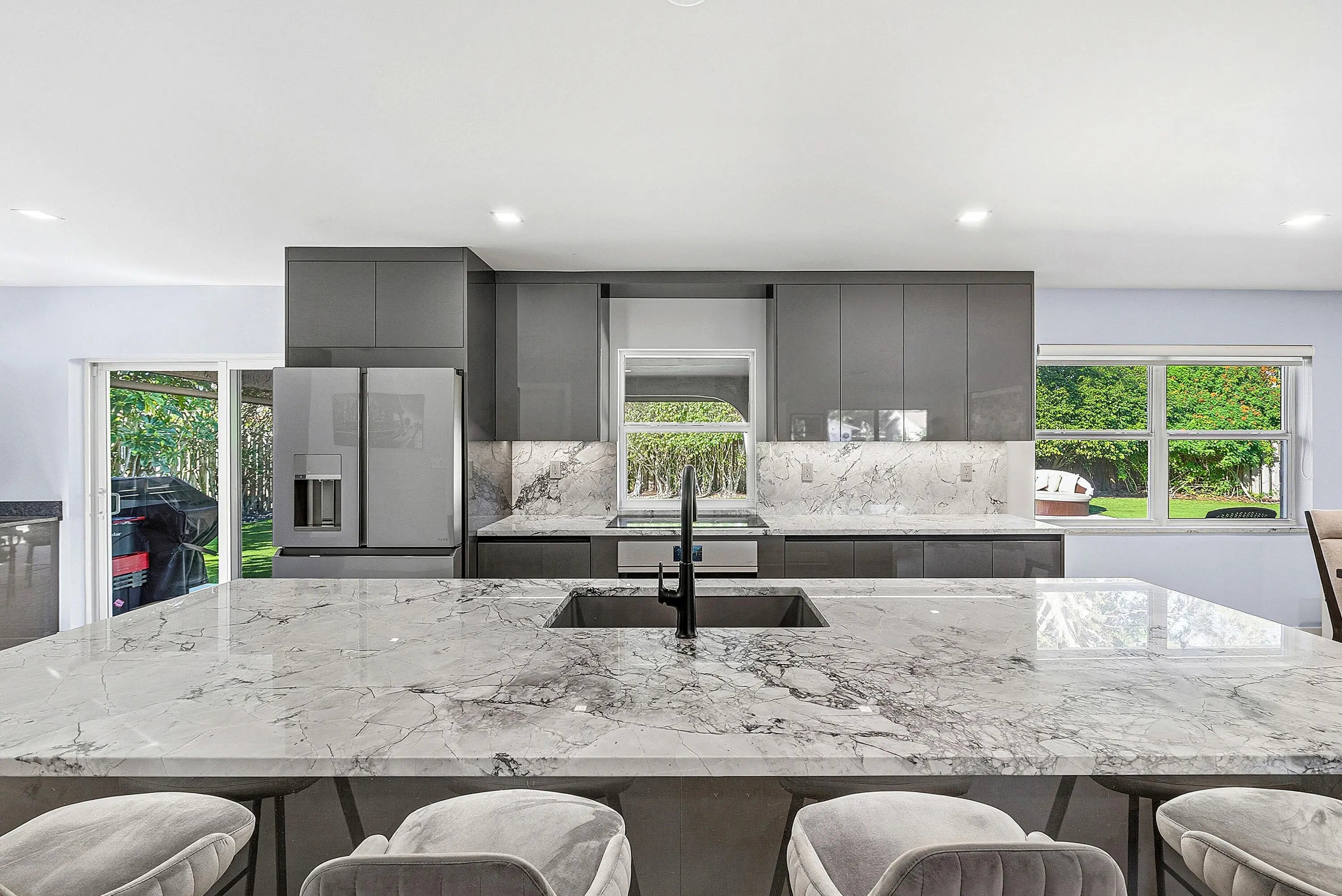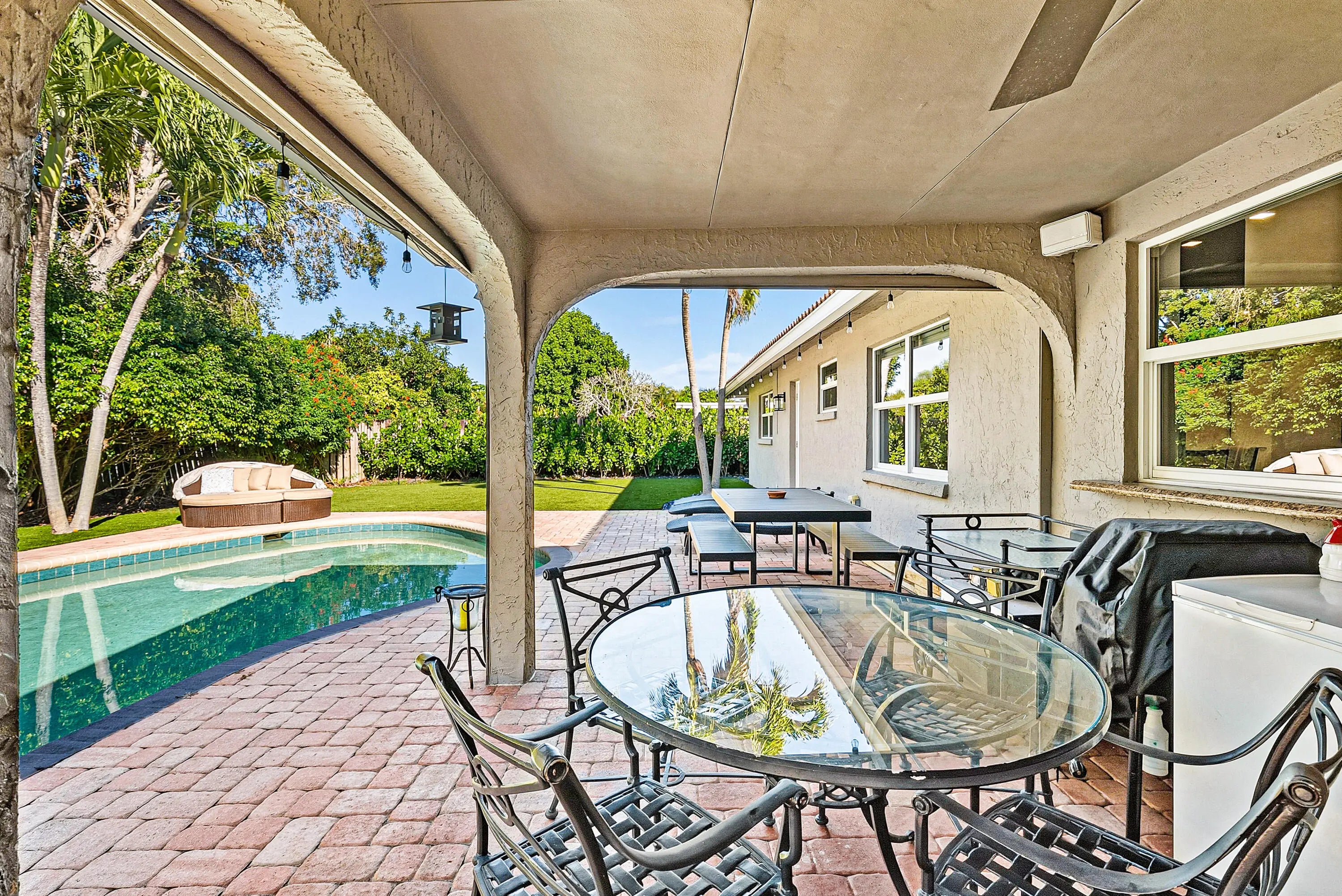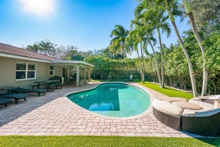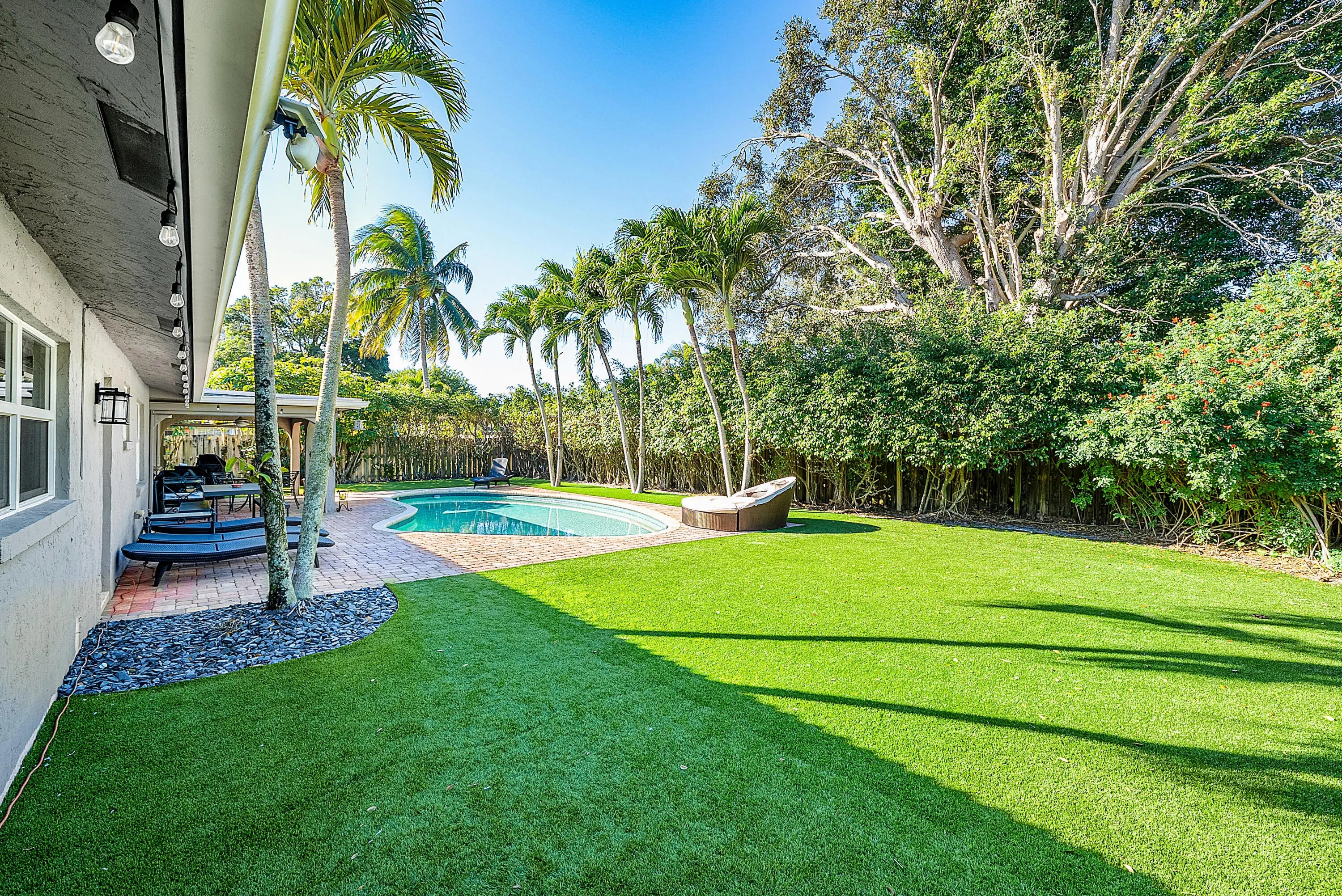 Full home remodeled in 2022, this sophisticated 3 bed 2 bath home showcases elevated design and modern luxury with porcelain tile throughout. The chef inspired kitchen is a true centerpiece, featuring premium Cafe appliances and a striking island with seating for four. Notable upgrades in the remodel include a fully air-conditioned garage, New A/C unit and ductwork (2019), new tankless water heater (2025). Step outside to a private, resort-style oasis with a large pool, fully fenced grounds, and lush artificial turf for effortless, low-maintenance living. A truly turnkey residence designed for both style and comfort