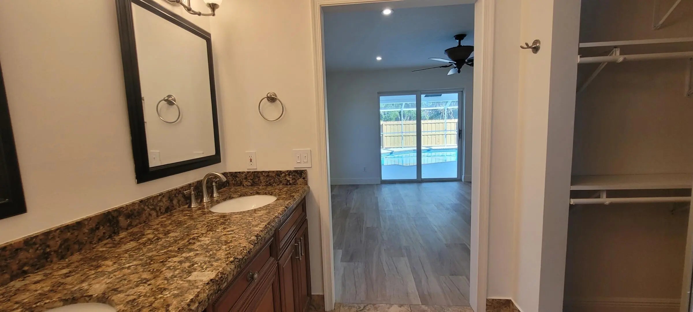 Located in highly desired Sugar Pond Manor, quiet and within walking distance of Wellington Elementary. Right in the middle of the Equestrian Capital of the World. Natural sunlight fills the, 3 bedroom, 2 full bath home with a 2 car garage boasting an insulated door and airconditioned garage. A freshly painted interior and exterior. Impact windows. Open kitchen plan with eat in granite countertops, tumbled marble flooring and sliding doors leading out to the patio pool deck making grilling and entertaining outside a breeze. Primary bedroom nicely fitted with a walk in closet, separate soaking tub and walk in shower. All bedrooms have large closets, ceiling fans and new PVC flooring. Living room has a fireplace - fenced yard - screened pool.