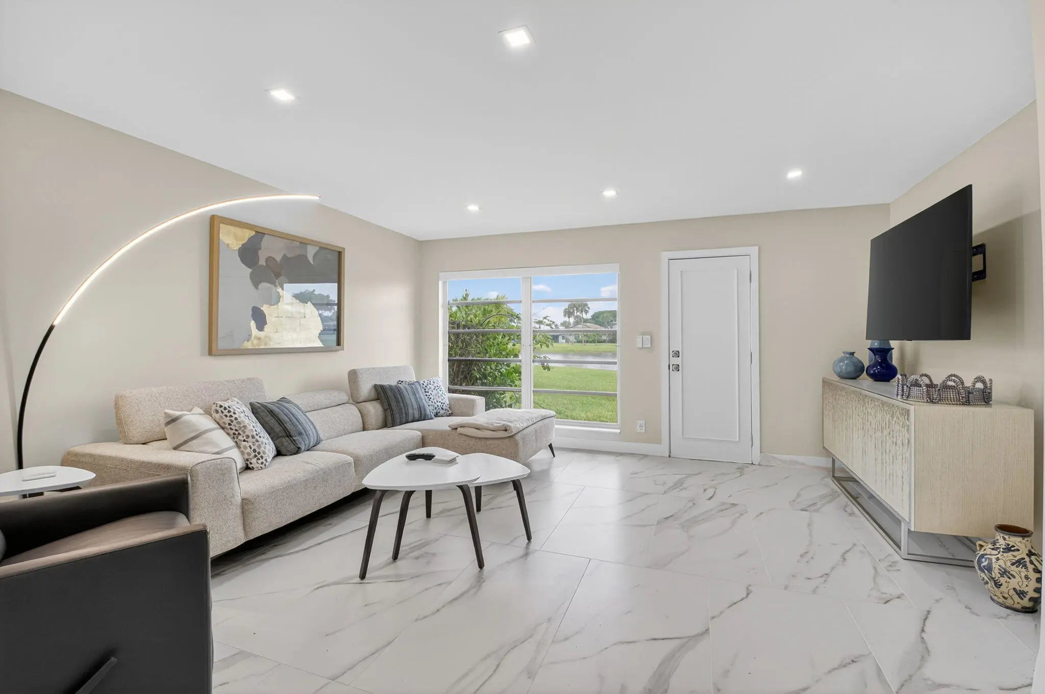 BIG PRICE CHANGE.Charming 2/2 first floor corner villa with no upstairs neighbors! This totally renovated home has an elegant but contemporary design. Open kitchen with spacious kitchen island ,enjoy the living room area welcoming to entertain friends and family . Both bathrooms boast high end finishes and convenient walk in showers. There is also a formal dining area, In unit washer and dryer. Customized open kitchen with wall removed Enjoy the clubhouse amenities of pool, pickle ball, tennis, cafe, and more. Very centrally located in Delray Beach , a short drive to the beach, restaurants, shopping and more. Palm Greens offers a full clubhouse with cafe, tennis multiple pools, pickelball, tennis and much more. . Designated parking right in front of door.