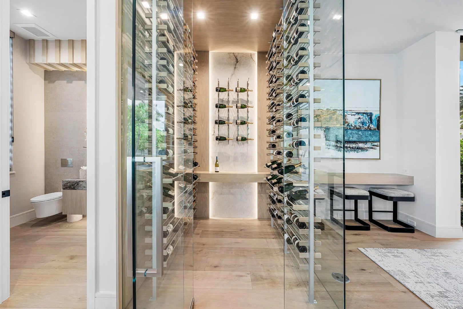 Discover a newly completed signature estate by SRD Building Corp., exquisitely designed by award-winning P&H Interiors, set within the prestigious Royal Palm Yacht & Country Club on an oversized interior lot. This exceptional residence blends architectural precision with curated luxury, offering an elevated lifestyle defined by thoughtful detail and refined craftsmanship. A striking entry reveals an expansive, open layout anchored by a state-of-the-art chef's kitchen with eat-in dining--ideal for both intimate gatherings and elegant entertaining. The sleek clubroom is designed for effortless hosting, featuring a full bar, billiards area, and a glass-enclosed wine room.