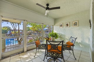 Nicely updated upstairs unit in a quiet, 2-story complex offering privacy and easy living. ALL IMPACT windows and shuttered sliding doors open to a shaded front patio with great north and south exposure. Interior features laminate flooring, a modernized kitchen, spacious primary bedroom with walk-in closet and updated bath, and a second bedroom with its own private bath. Just steps away from your own assigned parking space. THE BUILDING HAS A BRAND-NEW roof, RENOVATED community pool and deck. Low HOA fees and well-maintained common areas. & PET FRIENDLY COMMUNITYPlenty of restaurants, shops, grocery stores, and you're less than 10 minutes away from the beach!