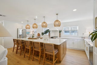 Move-in ready 2BR/2BA with a complete renovation throughout. Highlighted by an entertainer's kitchen with a generous island, Cafe appliances (2025), and LG washer/dryer (2025). Impact windows, new roof and exterior paint (2025), AC and water heater (2023). Expanded paver driveway with boat parking. Flood Zone X.This fully renovated 2-bedroom, 2-bath home offers the ideal blend of modern design and South Tampa convenience. Designed for effortless entertaining, the open kitchen features an impressive 11-foot island with ample seating and hidden storage, Quartz countertops and backsplash, custom designed kitchen with inset shaker cabinetry and new stainless steel Café appliances (2025), including a built-in wine and beverage refrigerator. A concealed LG stackable washer and dryer (2025) keeps the space streamlined and functional. Interior updates include smooth walls and ceilings, LED overhead lighting, wood-look LVT flooring throughout, and completely remodeled bathrooms (2025). Major improvements provide peace of mind, including a new roof (2025), exterior paint (2025) new AC handler and condenser (2023), and hot water heater (2023). Impact storm windows and plantation shutters enhance energy efficiency and durability. A rare find in South Tampa, the oversized paver driveway accommodates multiple vehicles and a boat. The backyard includes a work shed for additional storage or workspace. New 2025 landscaping and a Rain Bird irrigation system with drip and sprinkler zones complete the outdoor space. Located just blocks from Roosevelt Elementary and Plant High School, with easy access to local restaurants, daily amenities, and the Selmon Expressway. Situated in Flood Zone Xno flood insurance required. Move-in ready and thoughtfully upgraded throughout.