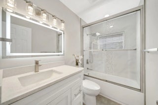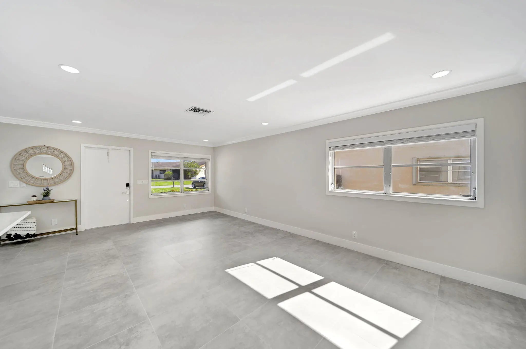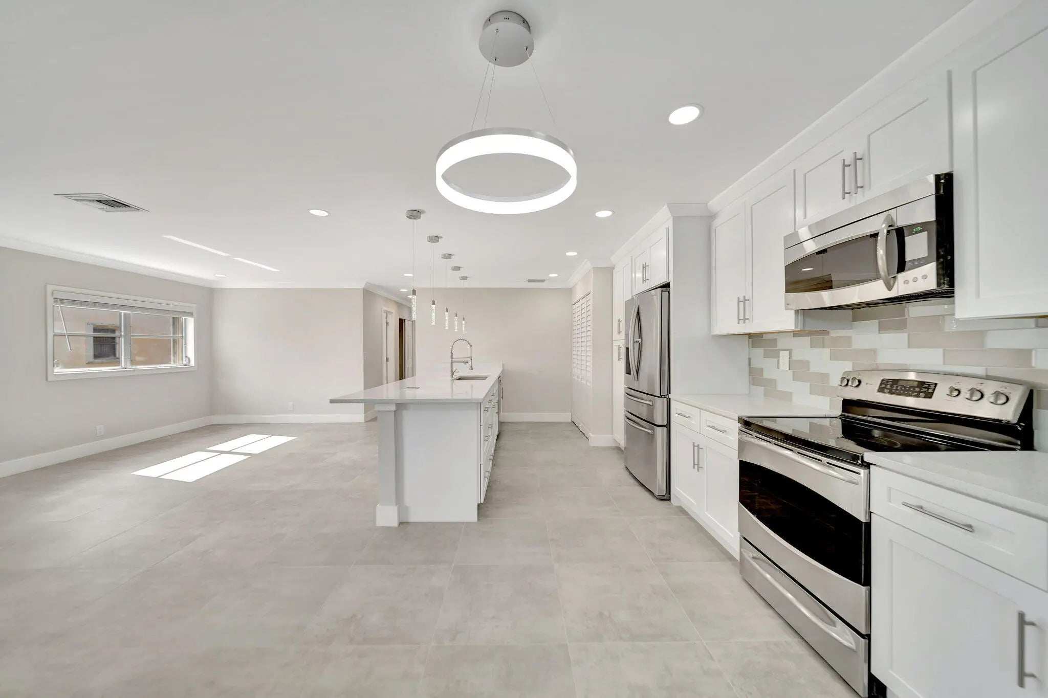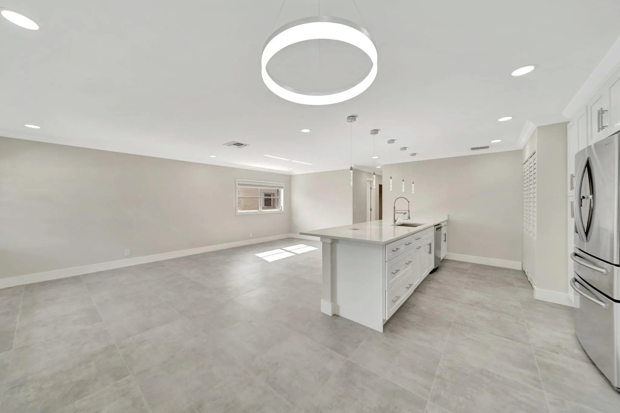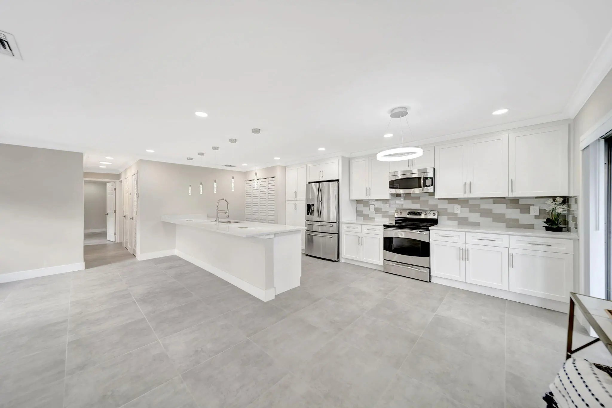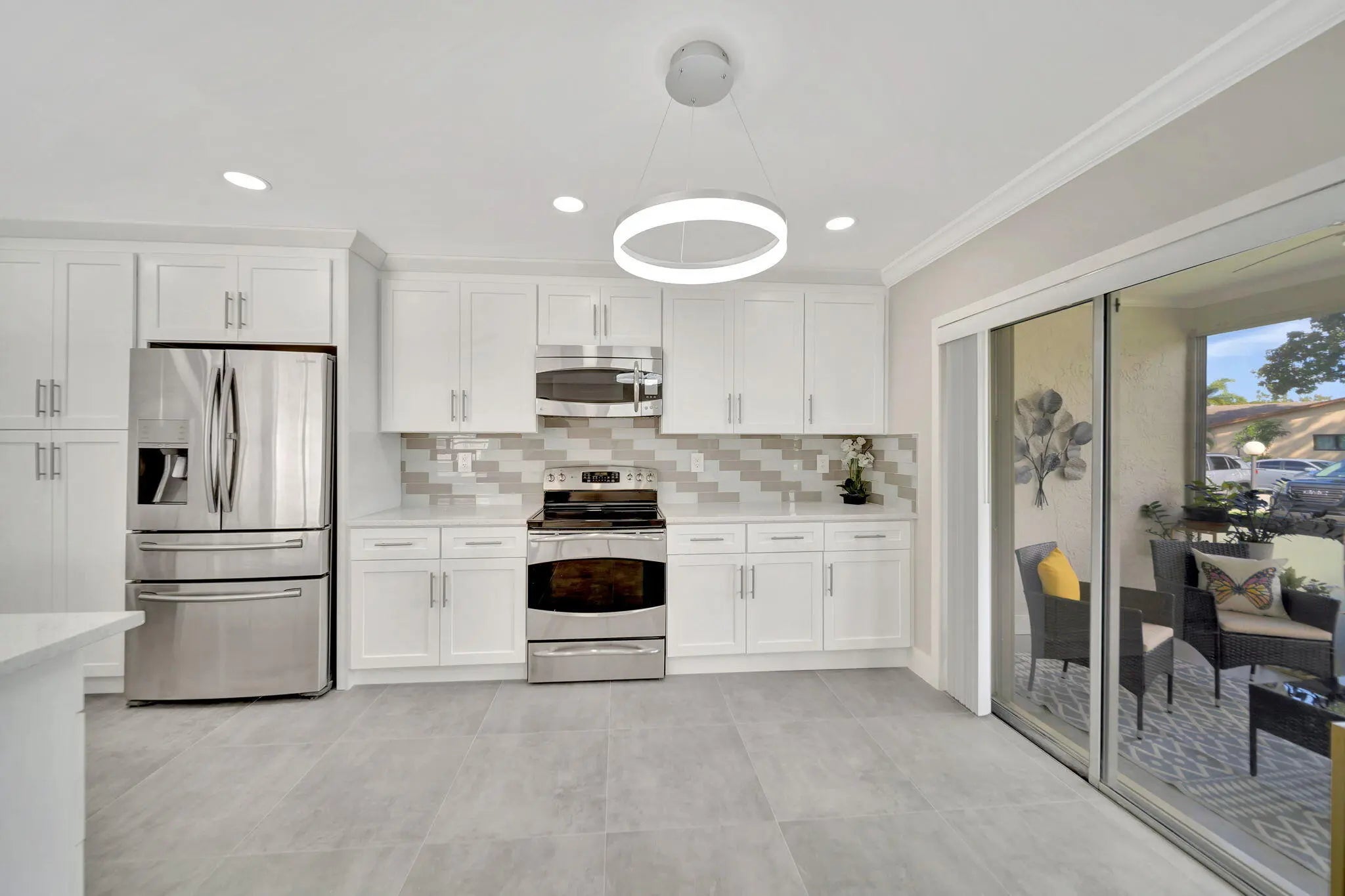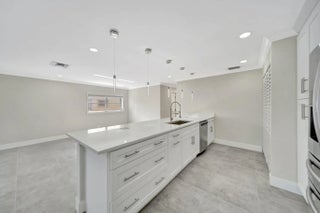 BRAND NEW ROOF! Open floor-plan villa with low HOA monthly fees of $250. As a perk, the HOA is freshly painting the outside of the property. Stunning 24x24 porcelain tile inside, on the screened patio, and outdoor patio - durable, elegant, and far superior to ceramic. 51/2'' baseboards, crown molding, new interior doors, and updated hardware throughout. A show-stopping 12.5-foot quartz island with a 12'' overhang for bar stools and two electrical outlets. Stainless steel appliances. 26 recessed LED high-hat lights with dimmers + under-cabinet lighting. Eat-in kitchen, oversized pantry.