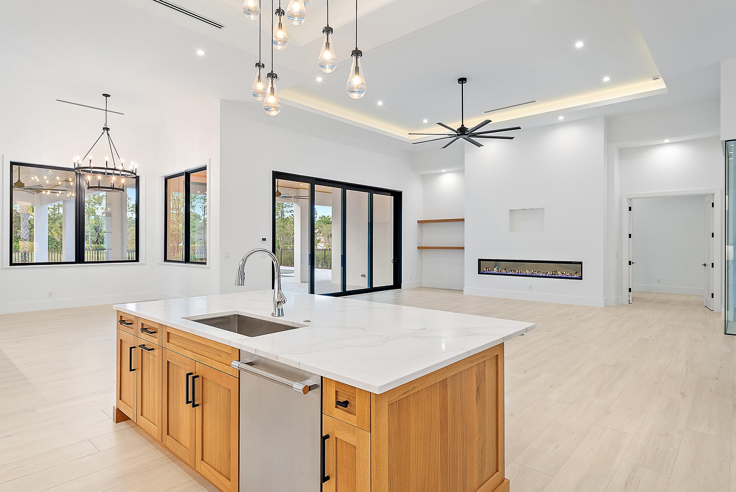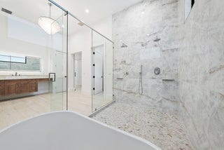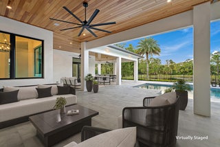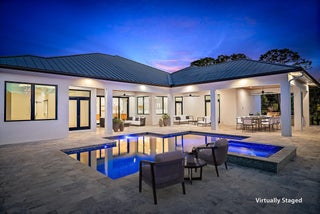 Located within a secluded estate-style community of meandering streets, this new construction home sits on an oversized 6.51-acre lot. The home features a modern floor plan with a clean, timeless design. Multiple living spaces open to an expansive covered and open-air outdoor living area with a summer kitchen, built-in speakers, and a saltwater pool & spa, creating seamless indoor-outdoor living. The rear yard overlooks a scenic pond; enjoy as a peaceful backdrop or fill in to expand usable green space. A four-bay detached garage with lift-height ceilings is connected by a breezeway. The property offers the opportunity to create a full equestrian estate or enjoy it as a private retreat. The community appeals to both equestrian and non-equestrian buyers, with a short hacking distance tothe community equestrian park and nearby stables, and convenient access to shopping, dining, golf, and beaches. Additional features include a full-house reverse osmosis (RO) water system, buried propane tank, generator hookup, spa-like primary suite, ensuite bedrooms, a large media or recreation room, and a dedicated office. Full Details list available.