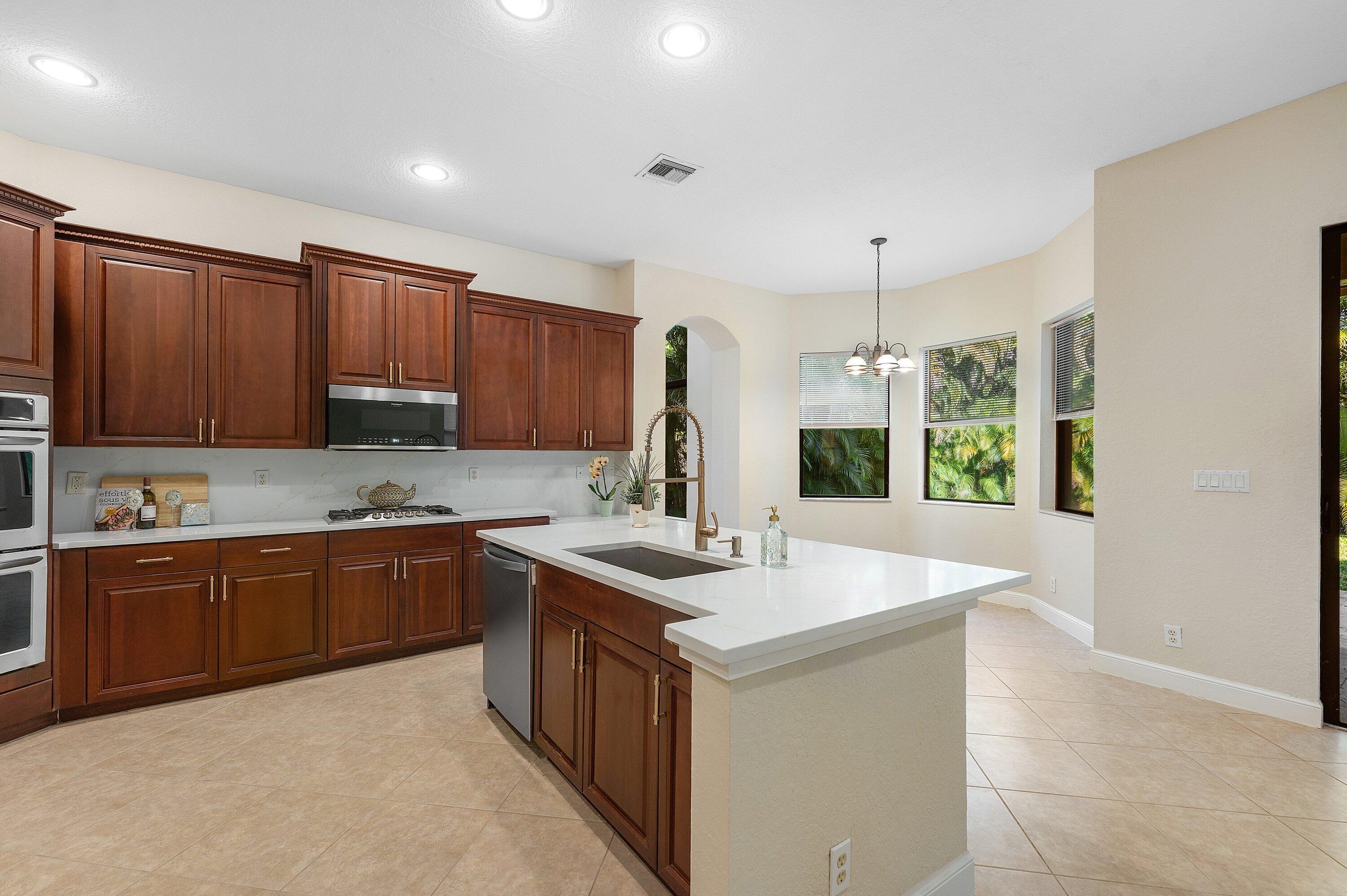 Welcome to your dream home! This beautiful residence combines elegance with modern comfort. 2019 roof and newly modernized kitchen countertops and stainless-steel appliances. It's truly ready for you to move in and enjoy. A grand two-story foyer and sweeping staircase set the tone for the home's impressive design. Soaring ceilings and expansive picture windows bathe the formal living and dining areas in natural light, creating an inviting space for entertaining or relaxing in style. The open-concept kitchen is a chef's delight--featuring new quartz countertops with matching backsplash, abundant cabinetry, a walk-in pantry, charming breakfast nook framed by bay windows and convenient breakfast bar add warmth and functionality. Enjoy top-tier Frigidaire Gallery appliances & gas cooktop!This fabulous floorplan offers a 1st floor bedroom with private ensuite and outside access. Laundry room and half bath are also conveniently on the first floor. Large primary bedroom upstairs with tray ceiling, ceiling fan and his/her walk-in-closets. The primary bathroom offers a walk-in shower and Roman tub along with double vanities and tons of natural light. Three additional spacious bedrooms and two bathrooms on the 2nd floor. All bedrooms have walk-in closets and ceiling fans. A sitting loft with reading bench is at the top of the winding staircase. Perfect for lounging! The backyard also offers a relaxing retreat. Privacy landscaping surrounds the backyard for full privacy and the new travertine patio offers covered and open areas to enjoy. Versailles is a great gated community with resort style pool, fitness room, hot tub, playground, tennis and basketball courts, clubhouse and management on site. Shopping and entertainment are all easily accessible.