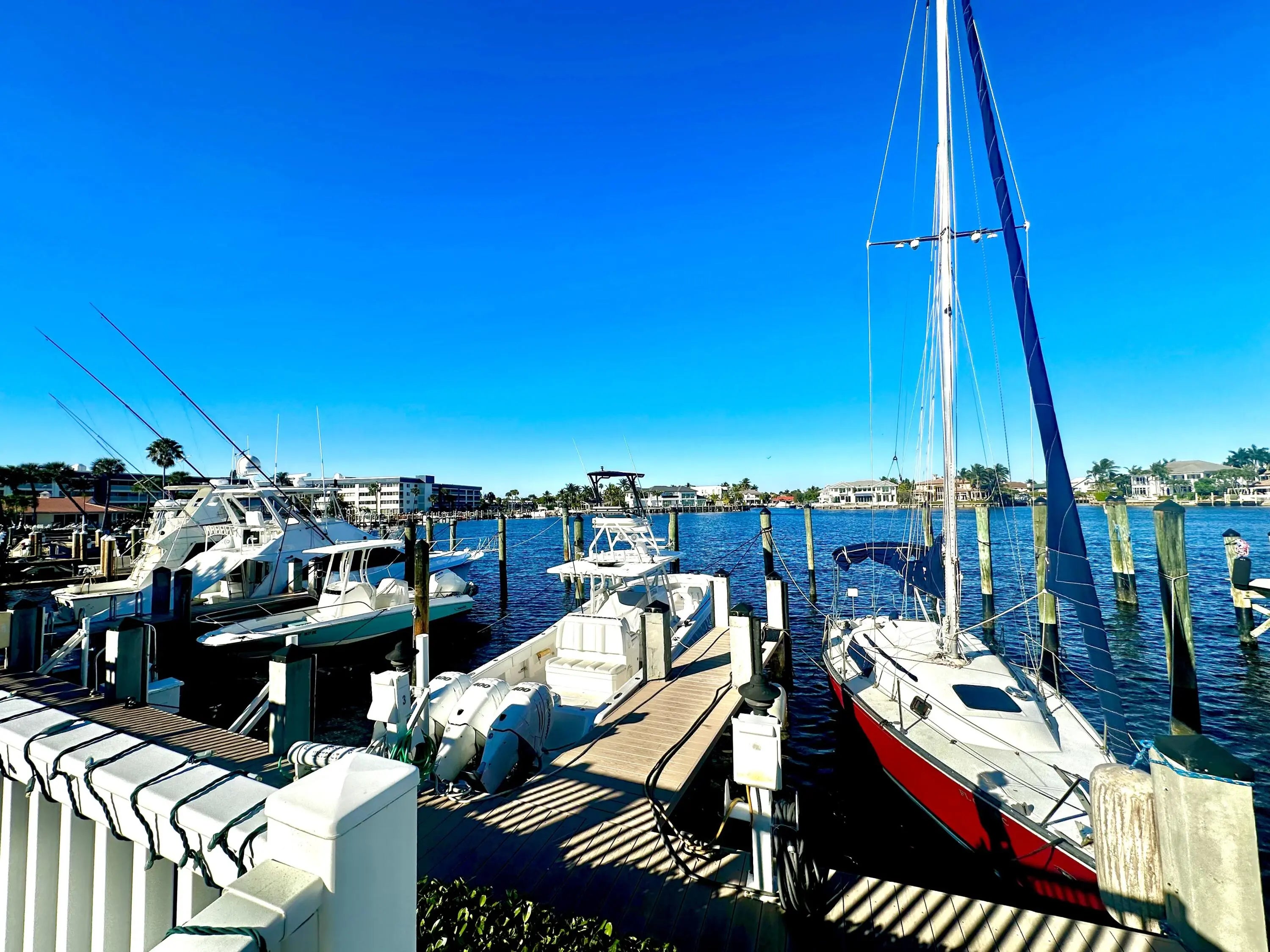 An East Delray waterfront guard gated community. This is one of the largest units over 1,400' and rarely available 2/2 W/ den or can make a true 3rd bedroom, there is lots of storage and closets. This top floor condo is open, spacious and bright.. Community comes with amenities for an active lifestyle with pool and tennis. Between famous Downtown Atlantic Ave Delray Beach and Mizner downtown Boca Raton. Convenient location to restaurants, medical, gyms, beaches, shopping includes, Trader Joes, Walmart, etc.. This is Florida living get a tan outdoors everyday, take your little fur baby for walks, do an indoor garden out on the patio sun room. Possible dock space up to 50' upon availability. Endless enjoyment and one of the fewer PET FRIENDLY communities in the area.