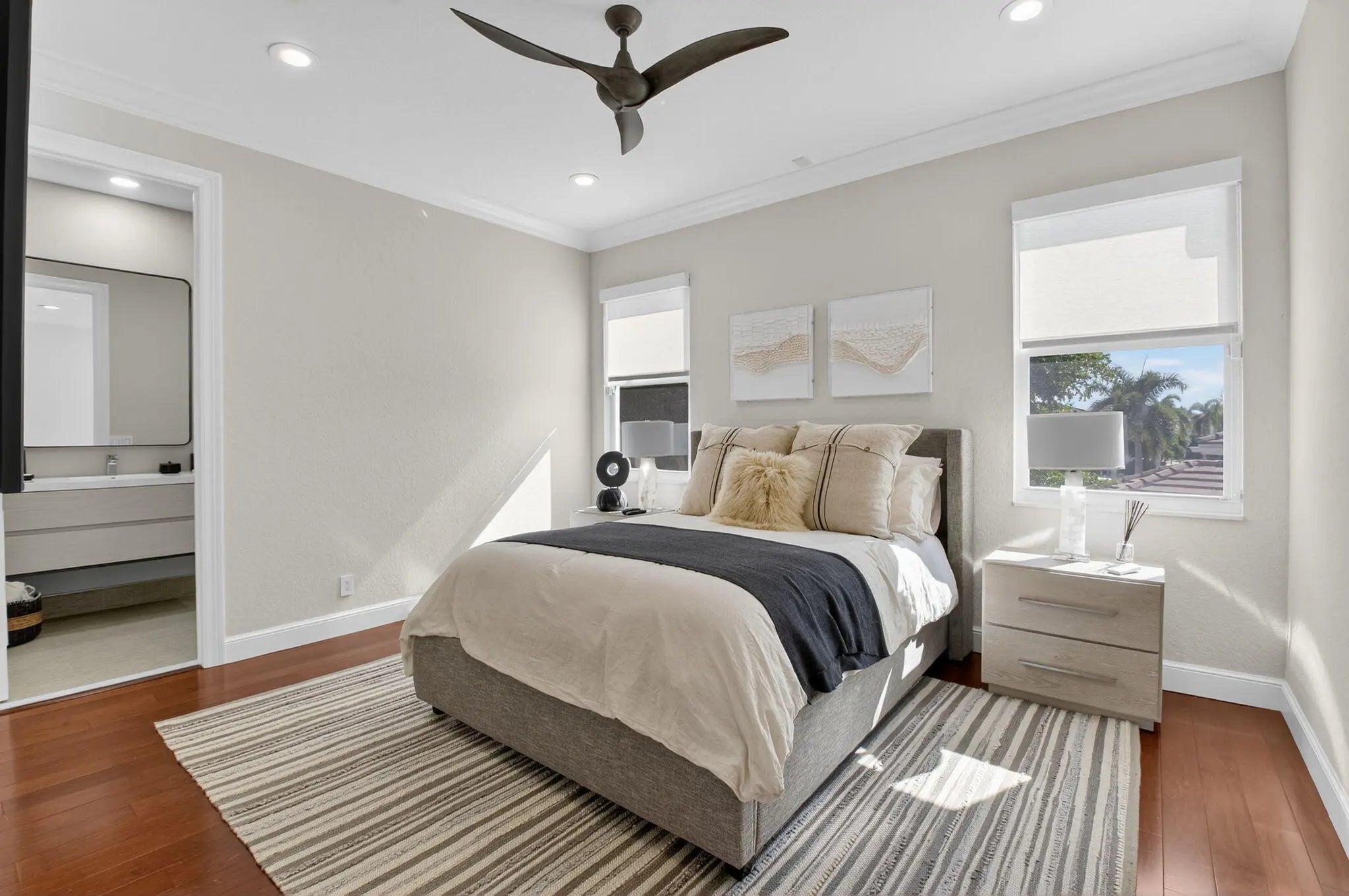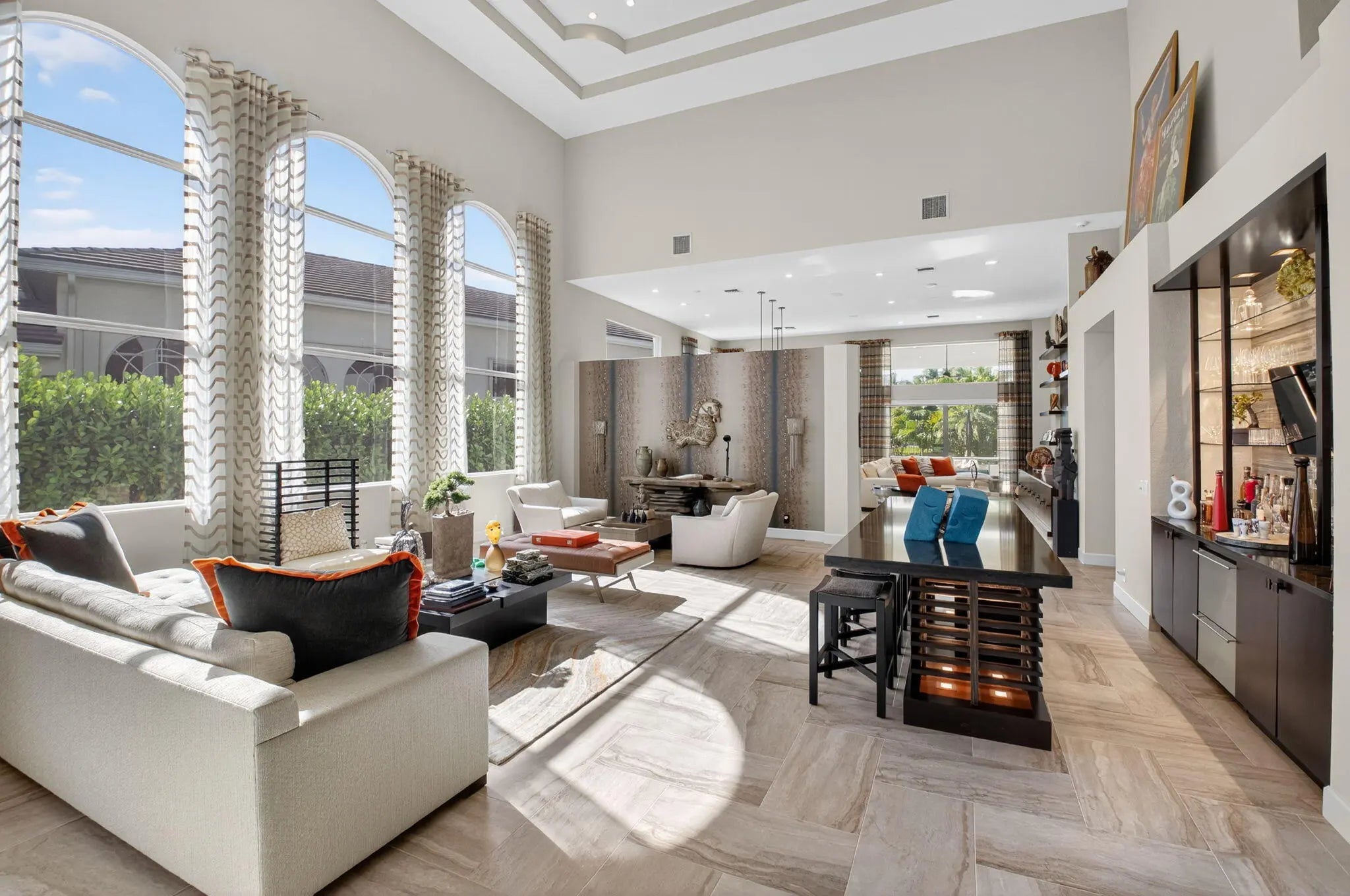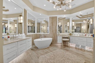 This is the home you've been waiting for in WOODFIELD COUNTRY CLUB. A circular driveway gracefully leads you up to this contemporary styled newly renovated 5 bedroom / 4.1 bath plus an additional office and offers 4764 ft of thoughtfully designed living space for both grand entertaining and intimate gatherings. The heart of the home is the chef's kitchen featuring top-of-the-line appliances with a breakfast nook that takes full advantage of the expansive lake views. The adjacent great room is perfectly designed with floor to ceiling windows, plenty of open air seating and an elegant bar that sets the stage for hosting dinner parties. The primary bedroom located on the main level features his and hers custom closets and an ensuite dream bathroom with dual sinks, makeup vanity,-