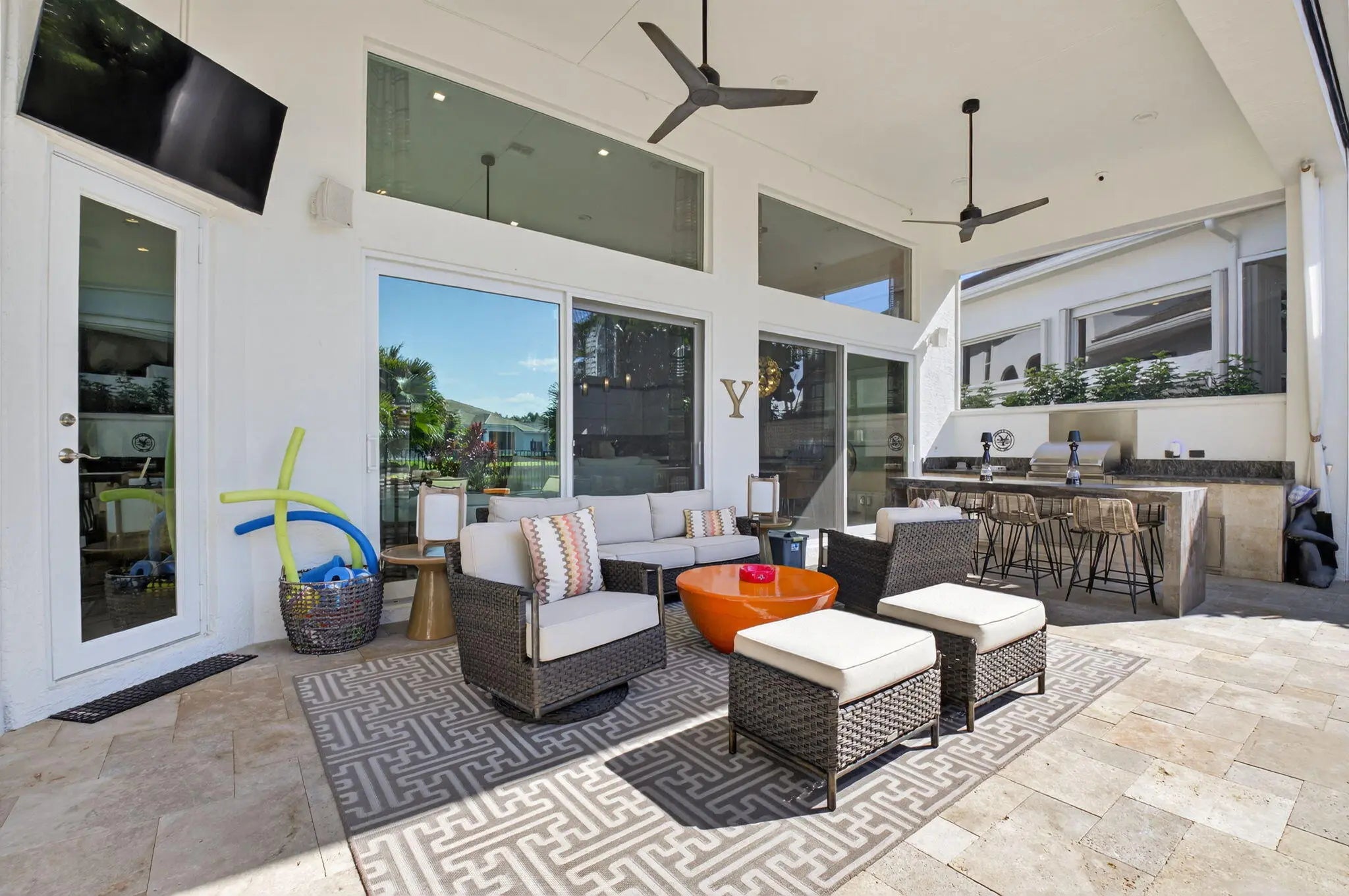 Auto Sprinkler, Built-in Grill, Covered Patio, Open Patio, Screened Patio, Summer Kitchen