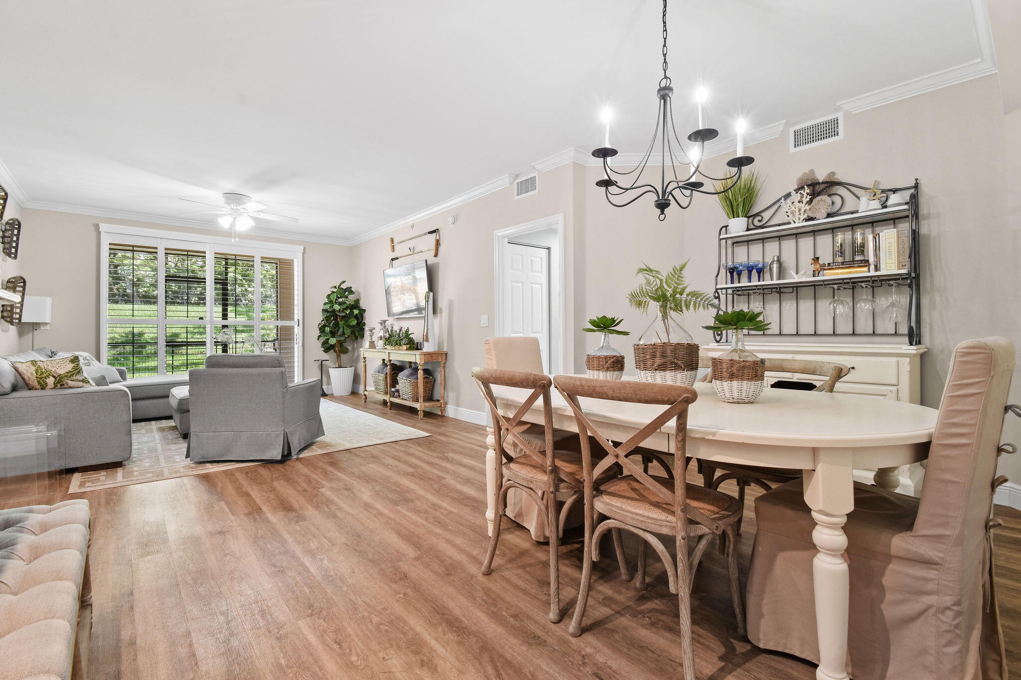 Ground floor, 3 bedroom, 2 full bath updated condo at Wellington's premier condo community. Upgraded from floor (vinyl plank flooring throughout) to ceiling (popcorn removed). New cabinets and fixtures in the kitchen and both baths. New shower tile and enclosures in both baths (no tubs). Double vanities in both baths. New AC 2025. Plantation shutters in all rooms. Custom baseboards and crown moldings. Screened porch plus an open patio leading to the paved and lit sidewalk behind. One car garage with a driveway for a second vehicle. One of the closest buildings to all the fabulous amenities (heated pool, spa, lighted tennis, tennis, fitness center, and more). Walking distance to restaurants and shops and just minutes to all equestrian venues. 20 minutes to PBIA