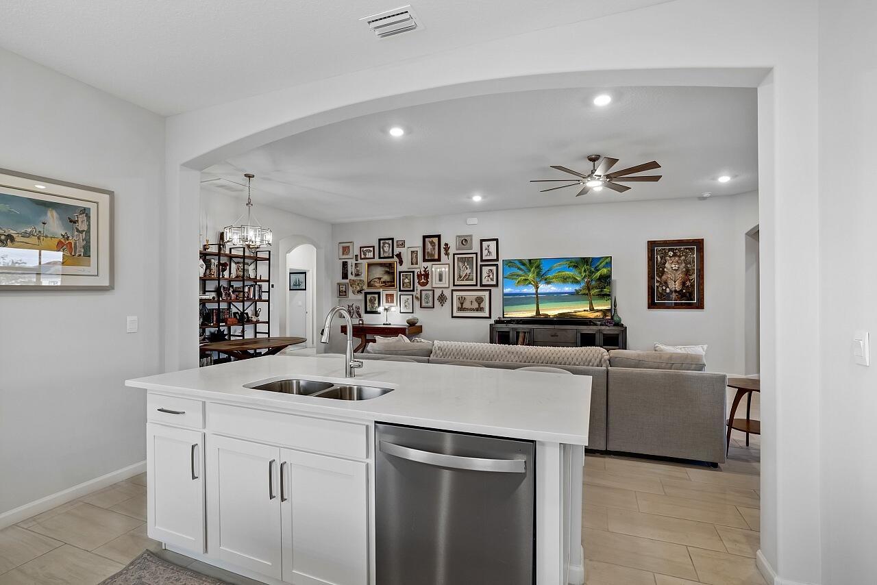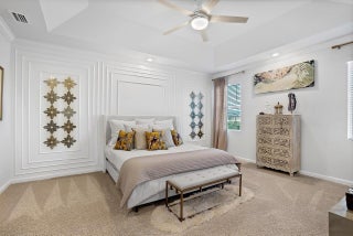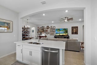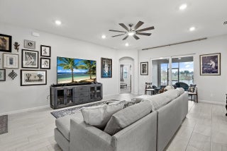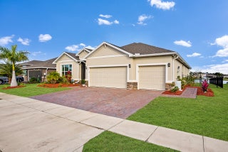 Better than new! Built in 2023 with $30,000+ in upgrades, this 3BR/3BA home with a 3-car garage features impact windows and doors throughout. Enjoy a screened epoxy patio overlooking a fenced yard with lake and fountain views (plenty of room for a pool). The kitchen offers double islands, quartz countertops, stainless appliances, pantry, and breakfast nook. The primary suite stuns with a tray ceiling and two custom walk-in closets. Additional upgrades include epoxy garage floor, gutters, screened front porch, and quartz bath vanities. Gated community, low HOA, central location--don't miss it!