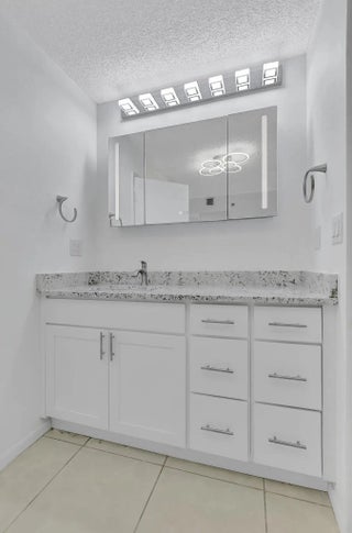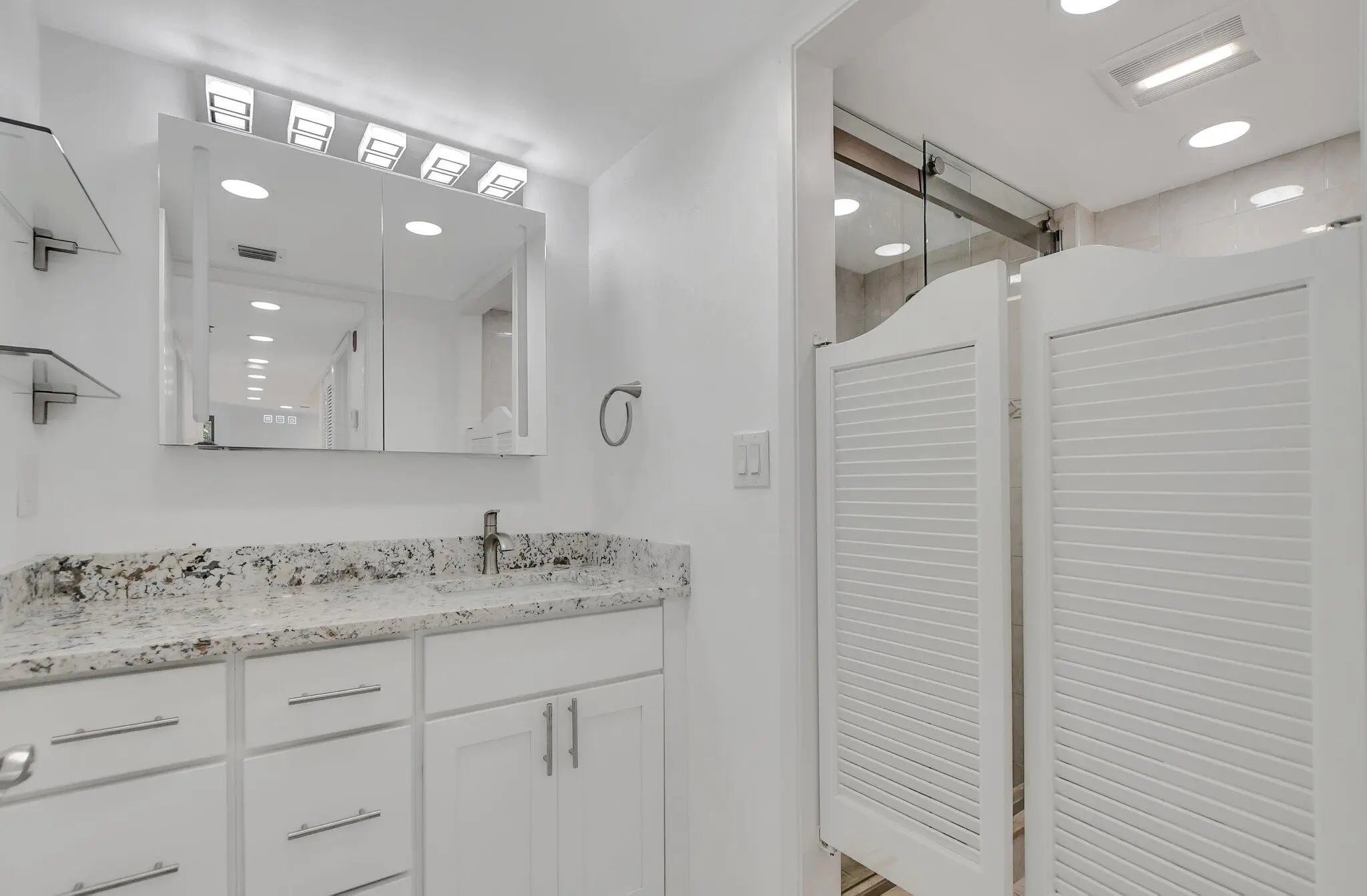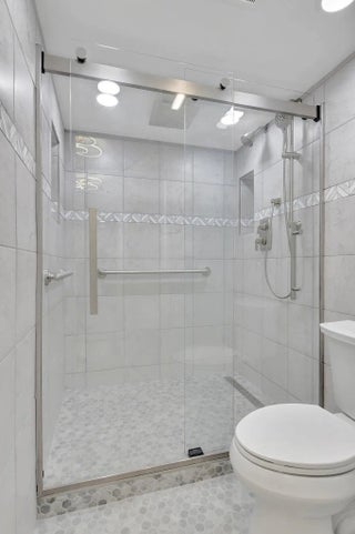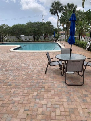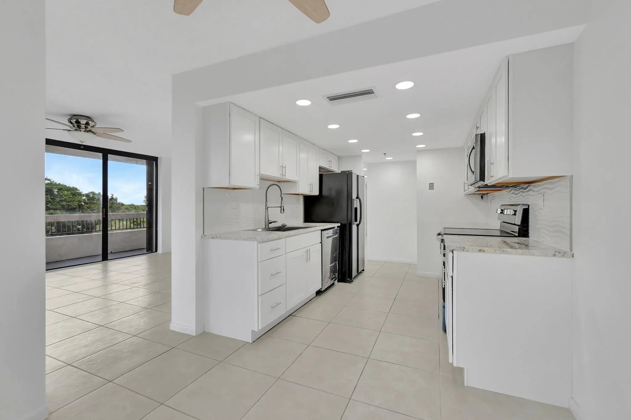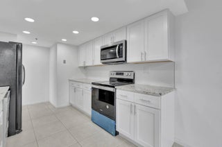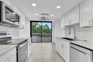 Pristine remodeled condo. New never used kitchen, appliances and bathrooms. New lighting and many additional Hi-Hat lighting added. Freshly painted. Brand new Washer and Dryer. Large master bedroom with two closets. Wrap around balcony for whole unit. Two cars allowed per owner. Great pool area. Building just renovated along with new roof. Accordion hurricane shutters. Parking spot by front entrance