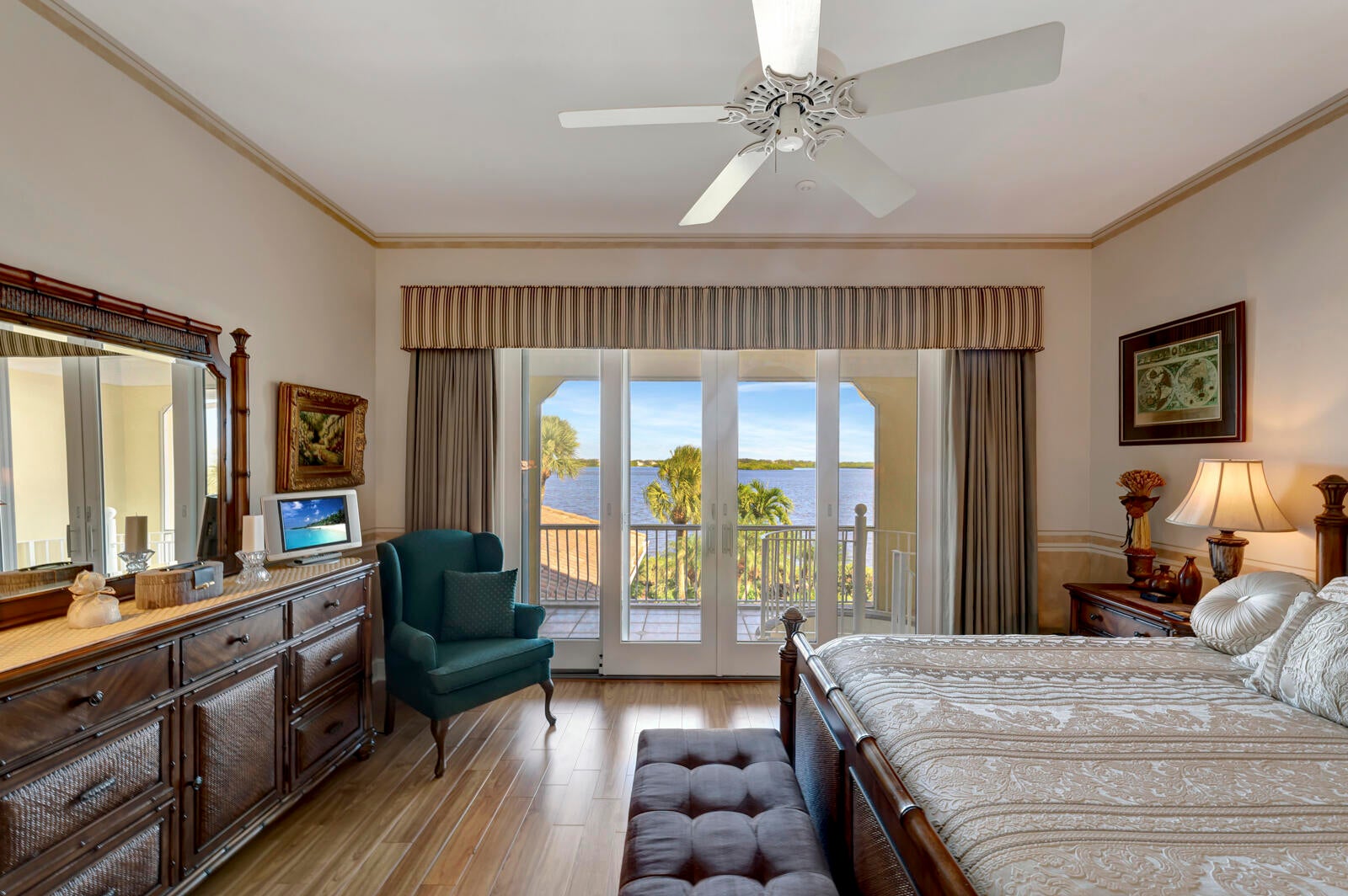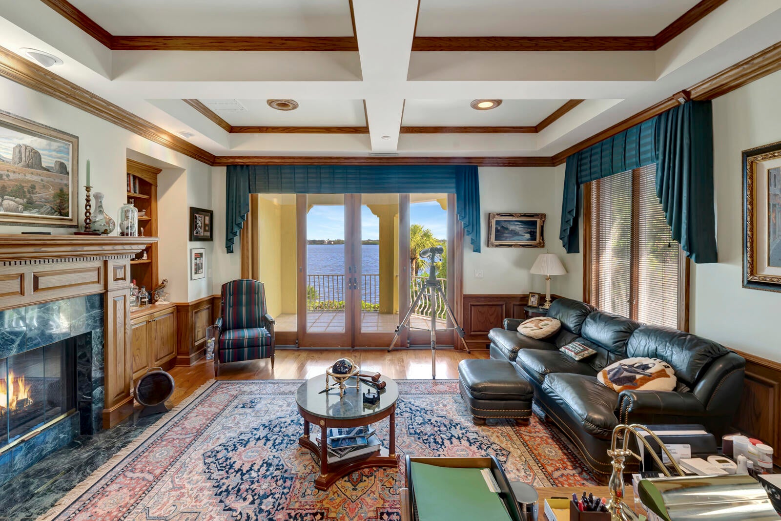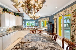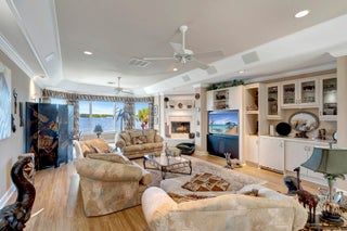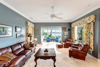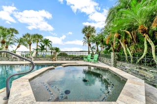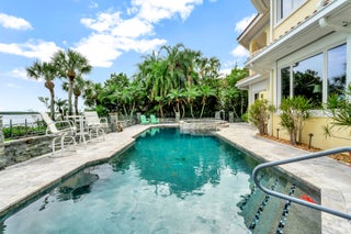 Refined riverfront estate spanning 8,123 sq ft on a .45-acre parcel with 100' of protected shoreline. Five bedrooms, six baths, heated pool and spa, climate-controlled wine room, and retention-secured waterfront. A gracious foyer opens to a dramatic riverfront living room. First-floor primary suite offers dual closets, spa bath, private stair access to dual dens, and a fireplace sitting room. Island kitchen flows into multiple living areas. Upstairs includes a lounge with wet bar and fireplace and a dedicated billiard room. custom millwork, and exceptional natural light throughout!