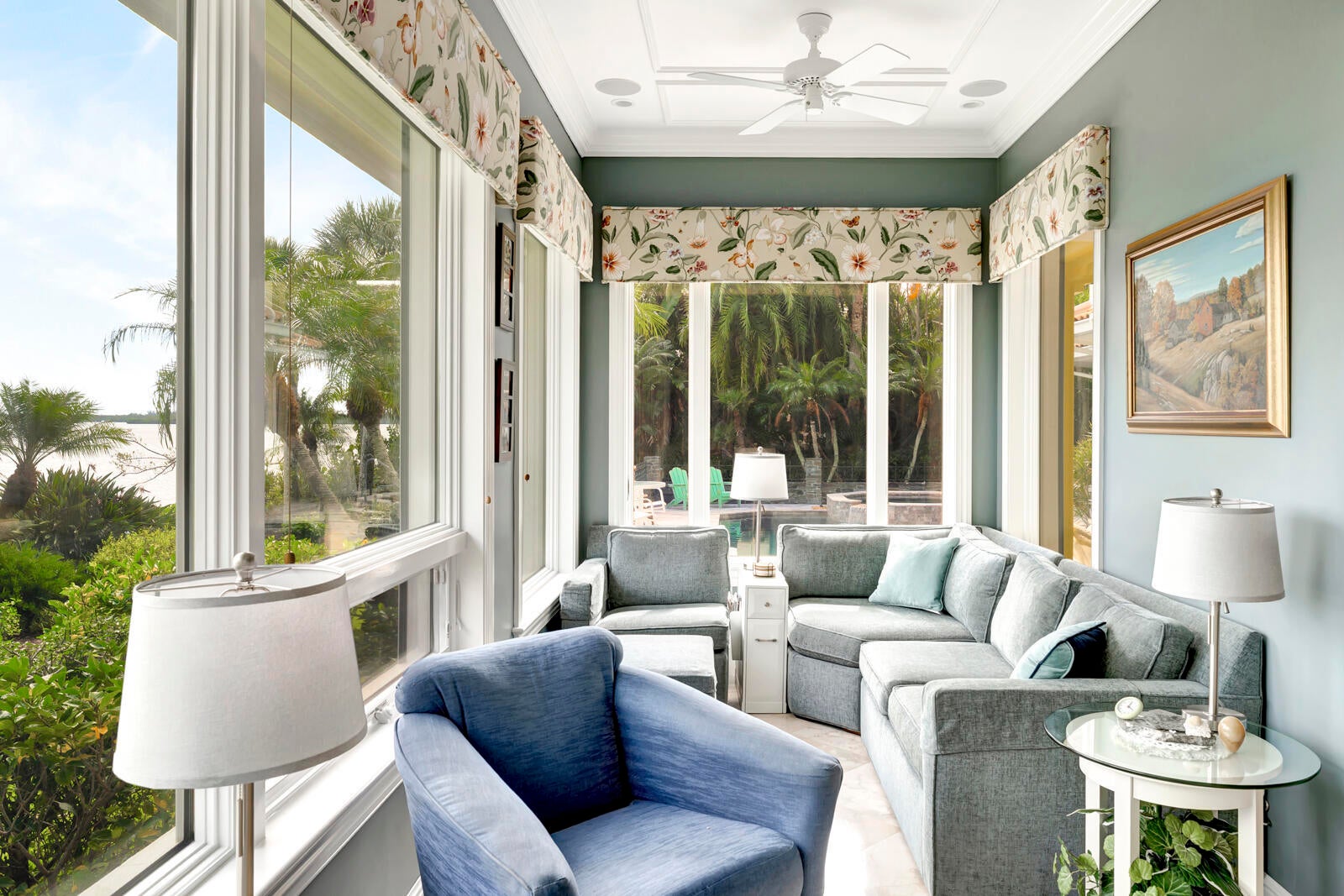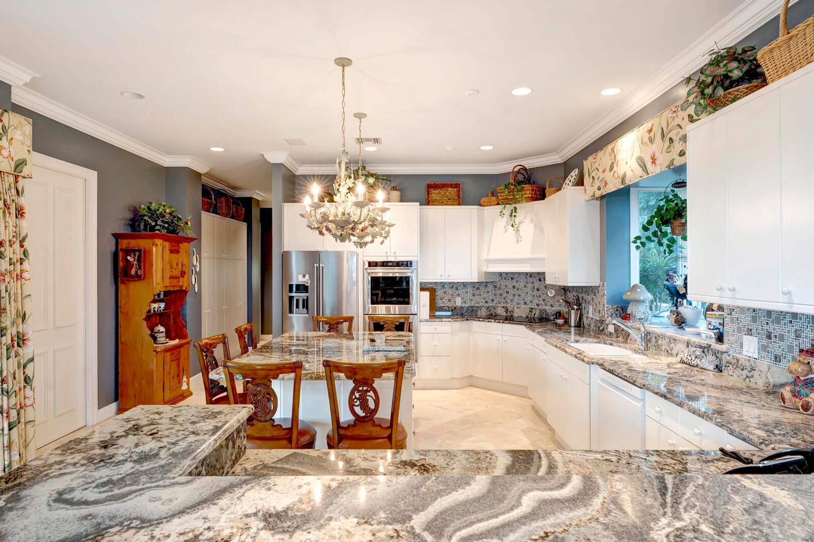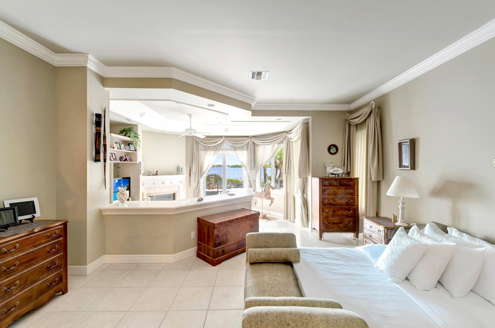 Refined riverfront estate spanning 8,123 sq ft on a .45-acre parcel with 100' of protected shoreline. Five bedrooms, six baths, heated pool and spa, climate-controlled wine room, and retention-secured waterfront. A gracious foyer opens to a dramatic riverfront living room. First-floor primary suite offers dual closets, spa bath, private stair access to dual dens, and a fireplace sitting room. Island kitchen flows into multiple living areas. Upstairs includes a lounge with wet bar and fireplace and a dedicated billiard room. custom millwork, and exceptional natural light throughout!