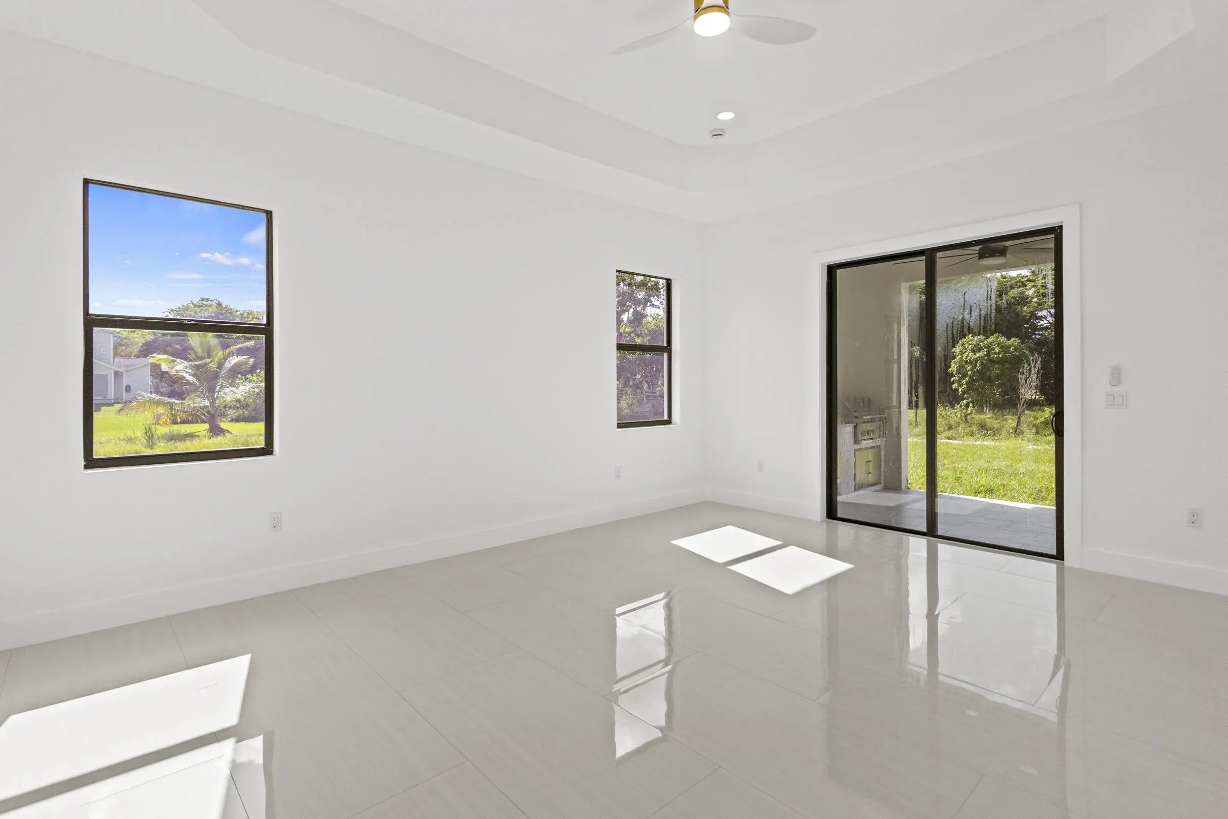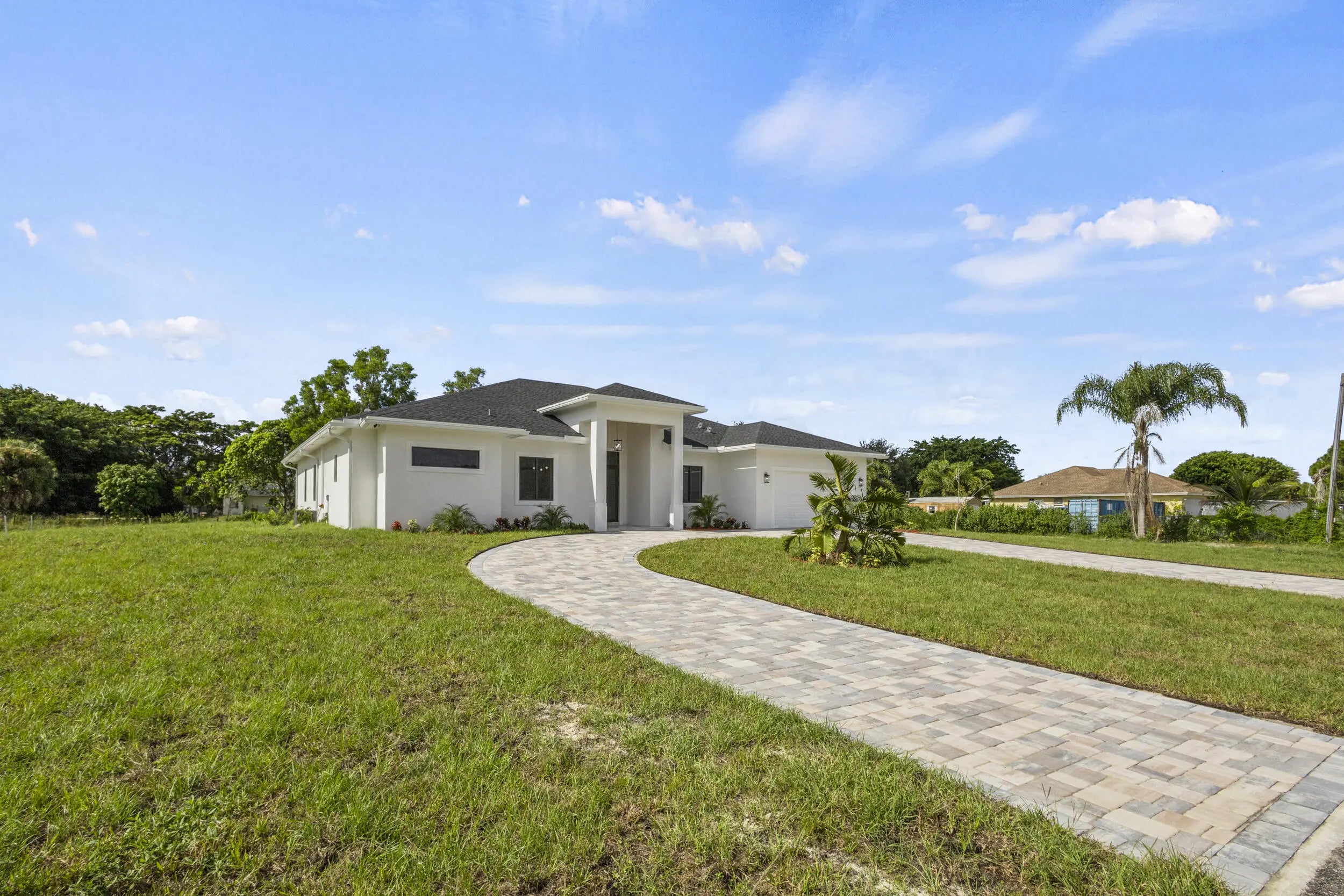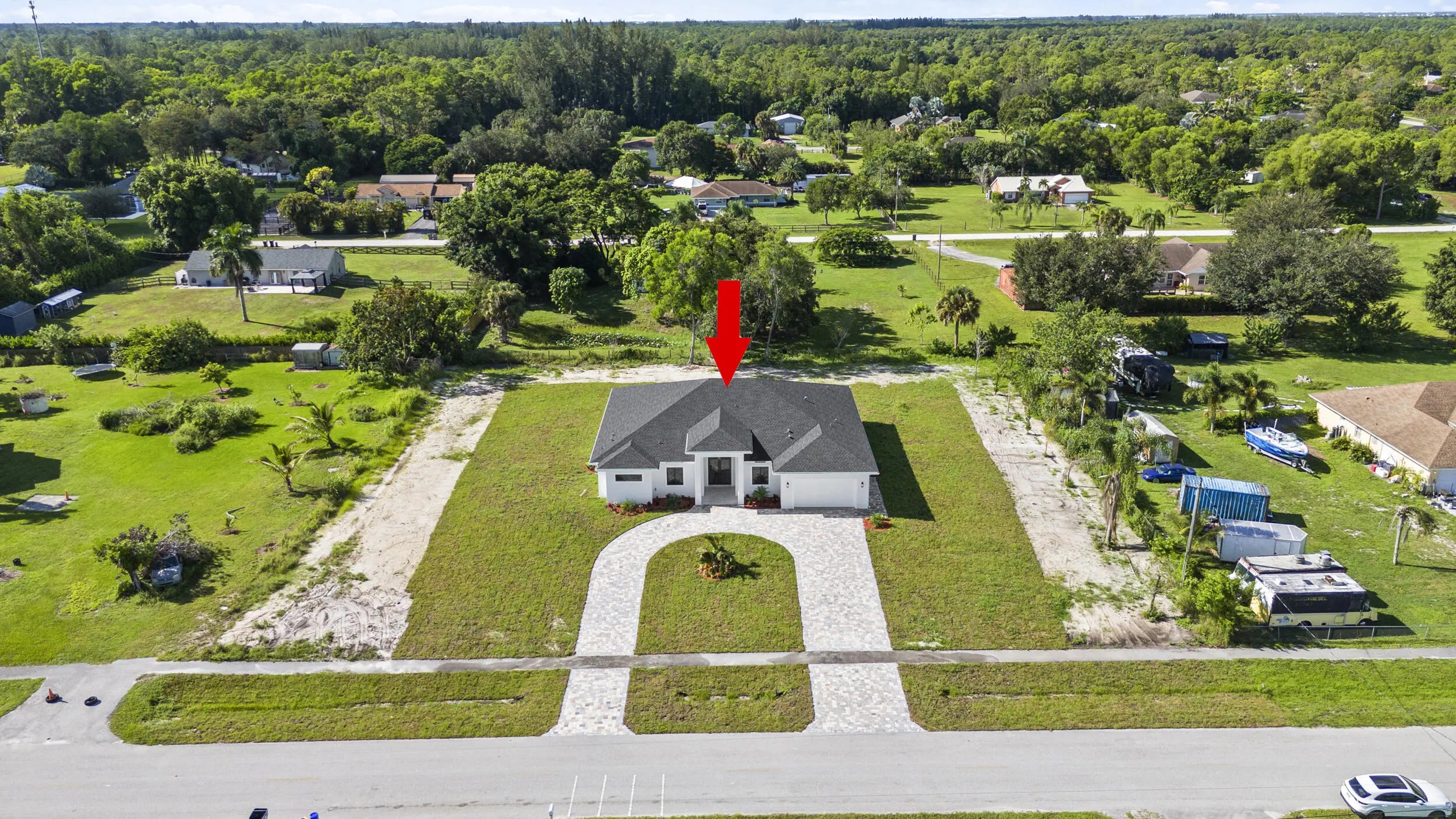Brand-new CBS home with a two-car garage on 1.19 acres in the heart of Loxahatchee! This 4-bedroom, 3.5-bathroom residence features an open, modern layout with vaulted ceilings, porcelain tile flooring, and impact-rated doors and windows.The gourmet kitchen boasts wood cabinetry, quartz countertops, a large island, oversized pantry, and brand-new stainless steel appliances. The luxurious master suite includes a Roman tub, separate shower, dual vanities, and his-and-her walk-in closets with custom-built shelving. The expansive lot provides exceptional versatility, allowing you to bring in your boat, RV, trailer, or trucks, raise animals such as horses, or even build a guest house, workshop, or large structure. The backyard is extremely spacious, providing plenty of room for a pool, and