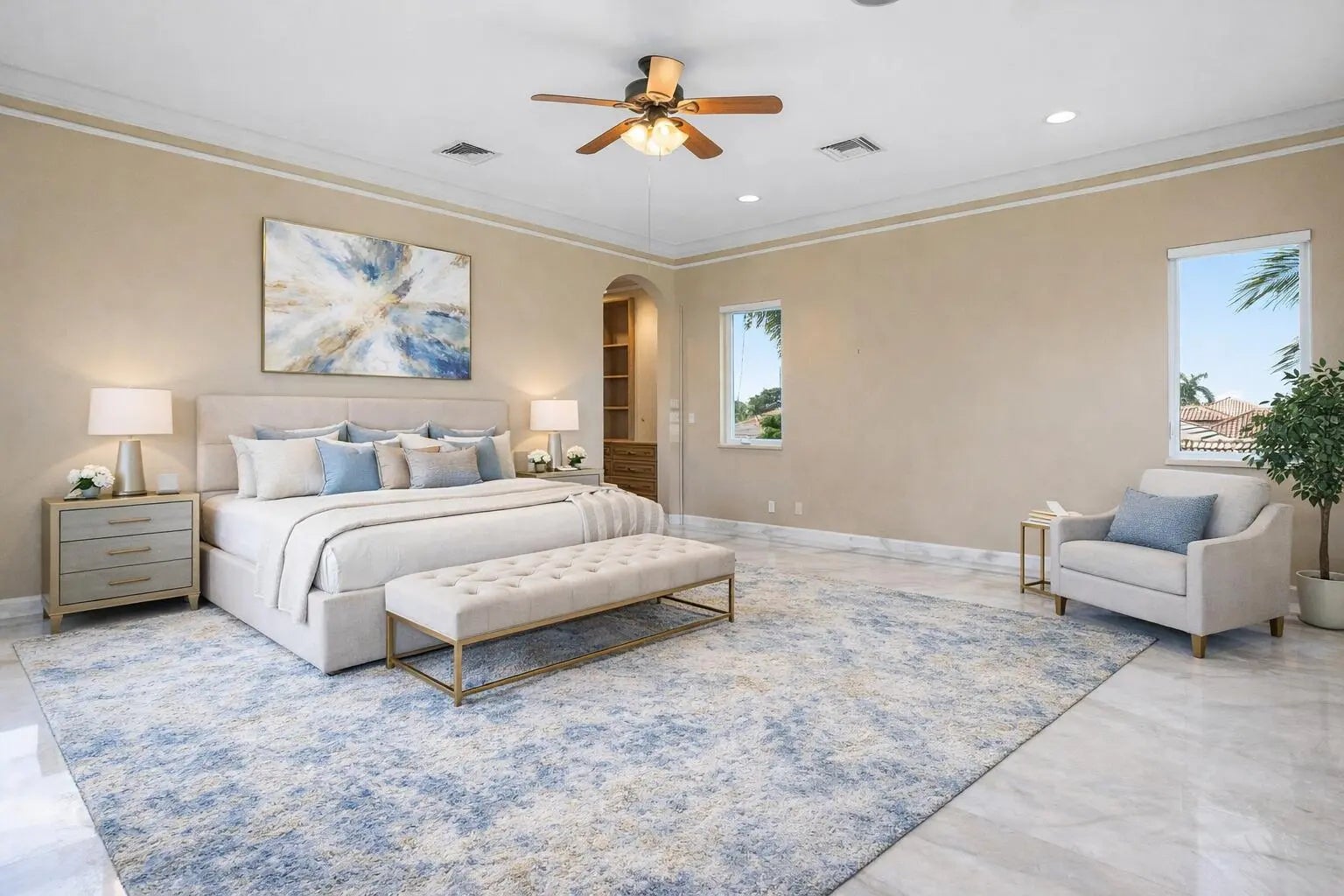 Your next home is a Magnificent Estate nestled in the prestigious gated community of Pine Tree Golf Club. This 5-bedroom, 4.1-bath Mediterranean masterpiece sits on almost 1/2 acre and is lushly landscaped to perfection!Enter to soaring ceilings, expansive floor-to-ceiling glass, and refined craftsmanship throughout. Quality construction and decor featuring Elegant stone and marble finishes, solid wood doors, and dramatic architectural details. Multiple living and entertaining spaces flow seamlessly to the outdoors, where covered patios and a resort-style pool setting invite true indoor-outdoor living.The thoughtfully designed layout includes a grand great room with vaulted ceilings & walls of glass, a regal formal living room, formal dining room, family room, and den.
