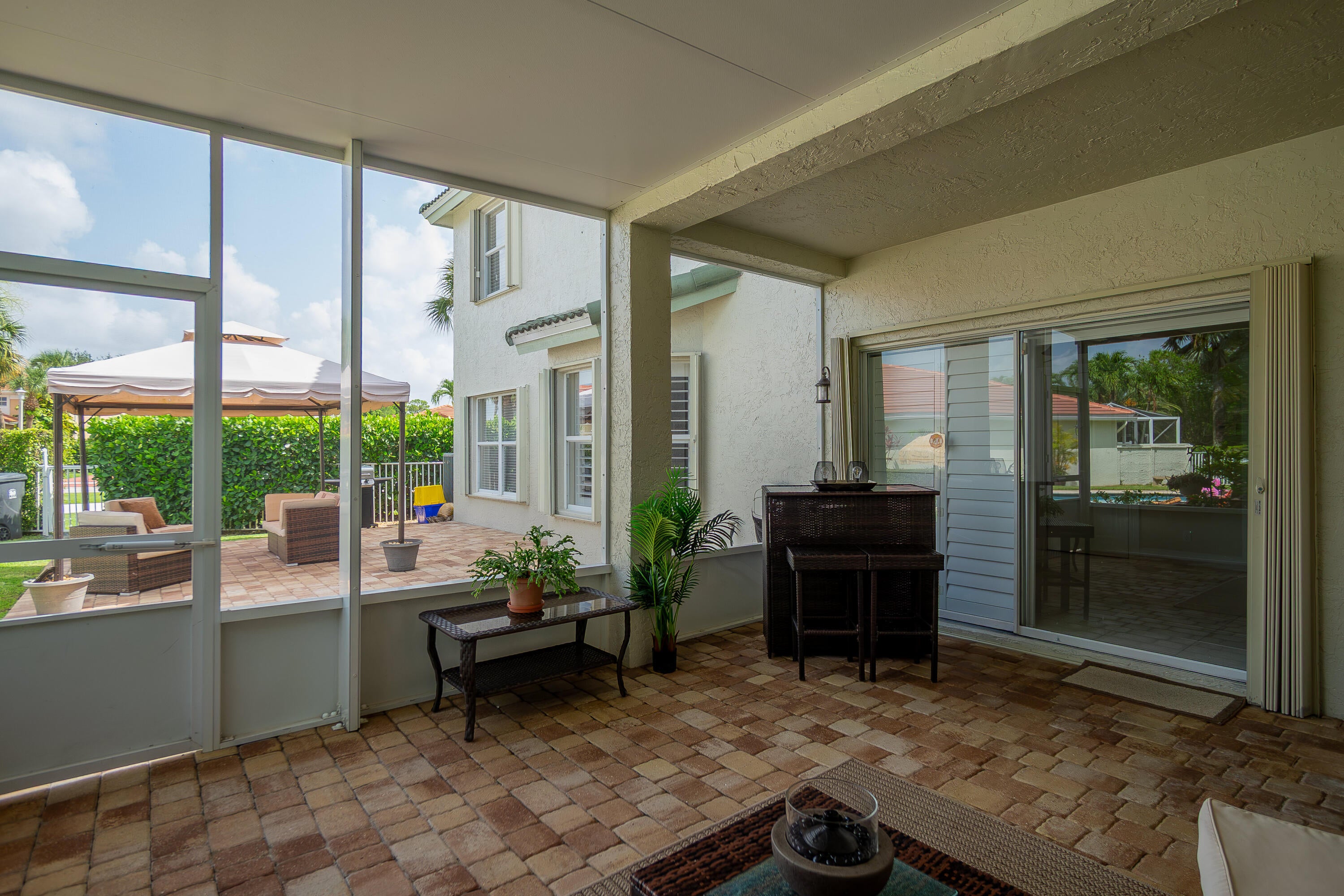 Auto Sprinkler, Covered Balcony, Covered Patio, Lake/Canal Sprinkler, Open Patio, Zoned Sprinkler, Fence, Screened Patio, Shutters