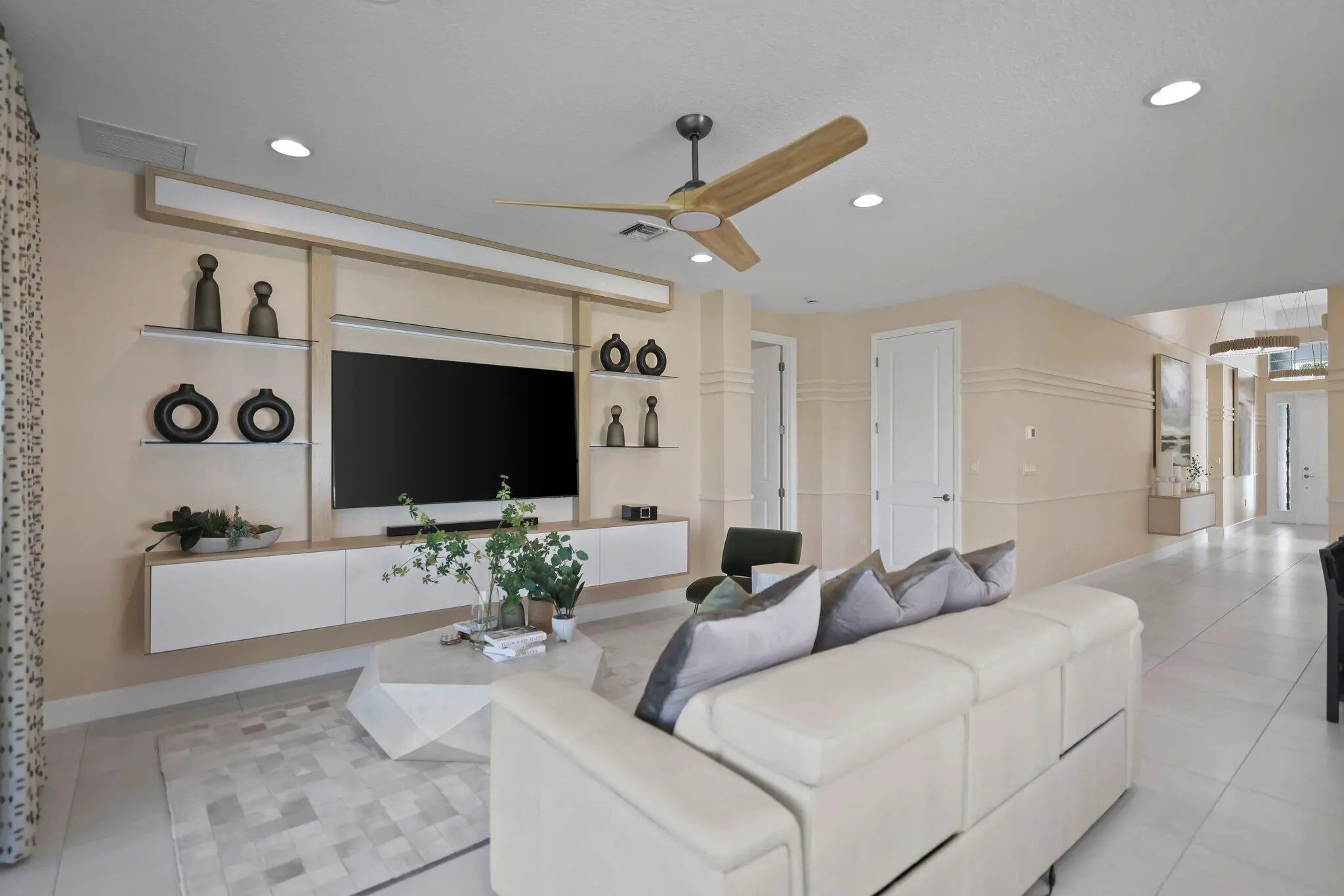 Welcome to luxury living in the Newport Coastal model by GL Homes, ideally located on the covered east side of Arden, just steps from the clubhouse and scenic trails. This mint-condition 4-bedroom, 3.5-bath home has been remodeled with over $150,000 in high-end upgrades and feels like a designer model. Highlights include custom wallpaper throughout, upgraded light fixtures, blinds, a built-in entertainment center, and a seamless open layout perfect for entertaining. a FULL huse generator adds peace of mind year-round. Enjoy a private outdoor living space with a built-in grill, screened in patio and outdoor TV. Truly turnkey and crafted for the pickiest buyer.
