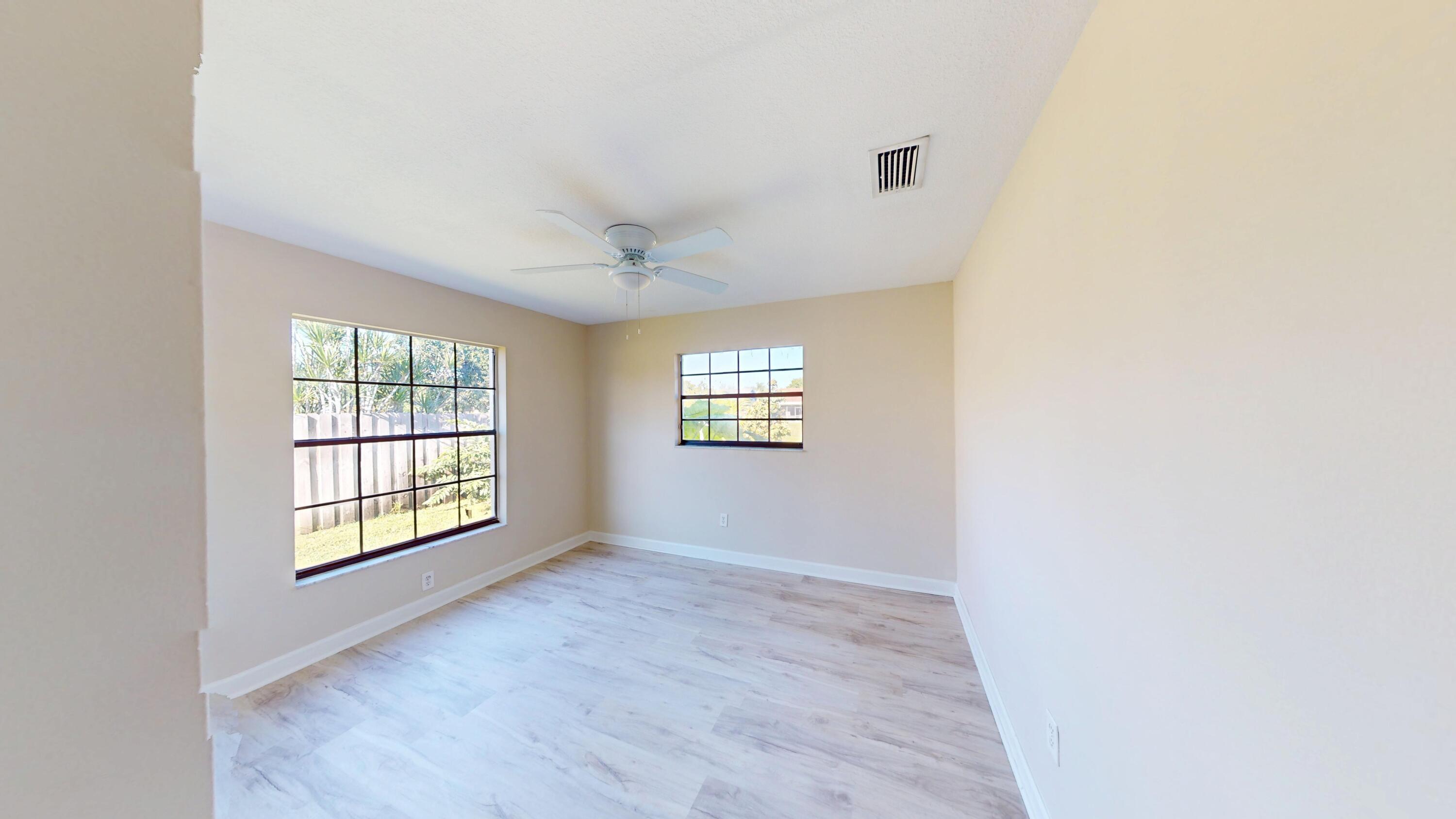 Welcome to a 3Bd, 2 BA, home located in a prime area of Wellington. This home boasts a split floor plan, providing ample space and privacy. The master suite is a luxurious retreat, complete with a renovated bathroom and walk-in closet. The home also features new flooring in all bedrooms, adding a touch of modern elegance. The kitchen has been updated with new cabinets and marble countertops. A large backyard with a screened-in patio equipped with an outdoor kitchen set up, the home is perfect for enjoying Florida's beautiful weather and plenty of space for outdoor activities. The two-car garage offers plenty of storage and parking space. This home is situated on a cul-de-sac, providing a sense of community and safety. Close to Wellington Mall, Town Square and High Quality Schools.