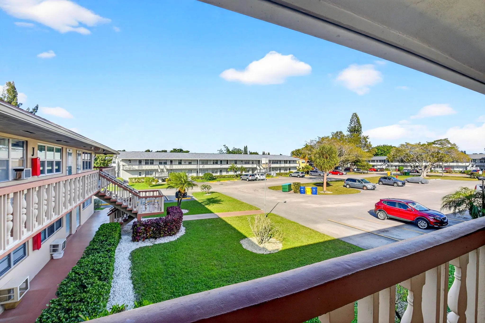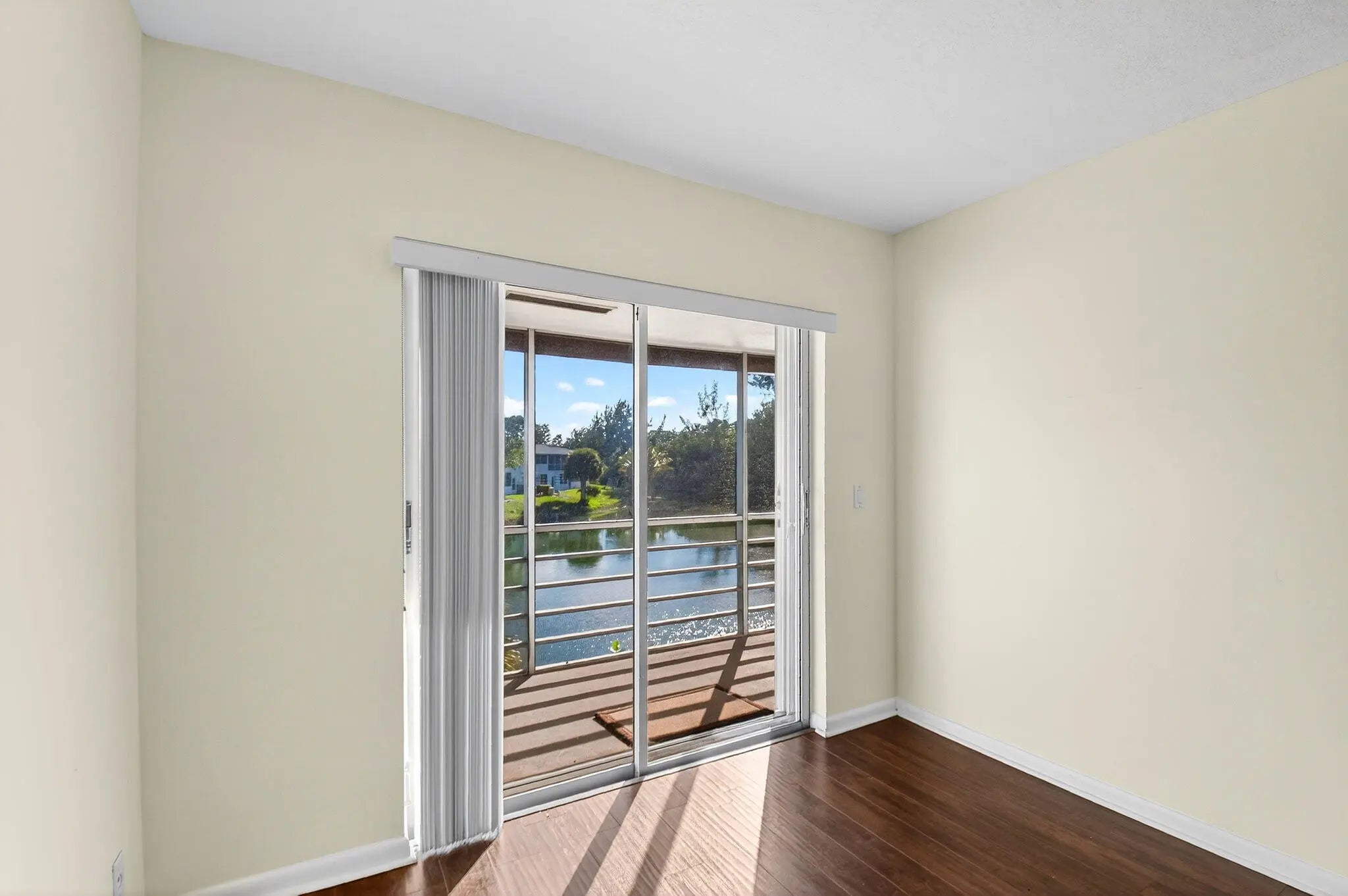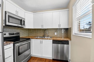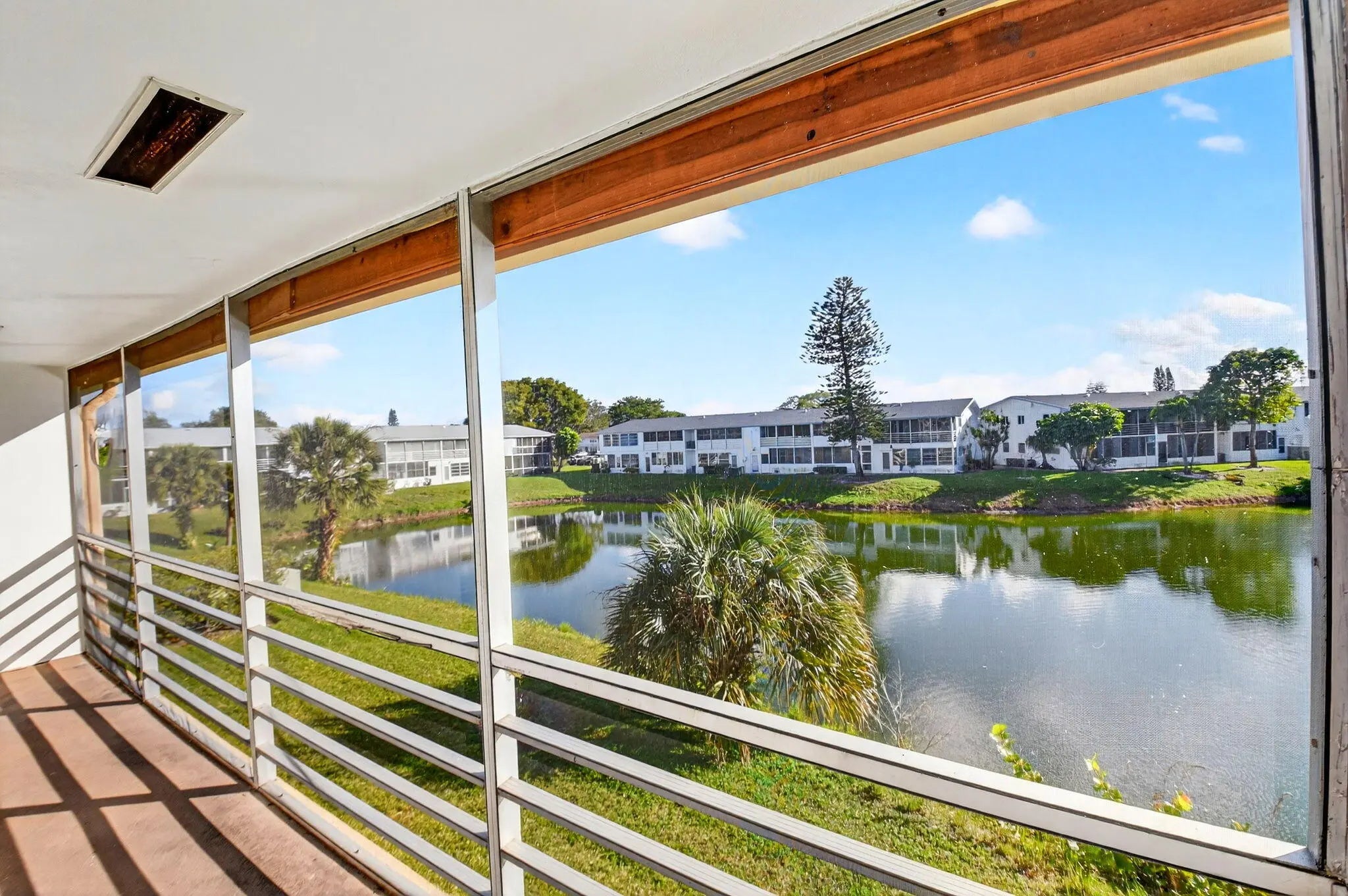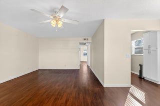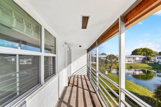 Beautifully updated corner residence with serene water views in Century Village in West Palm Beach. This spacious 2-bedroom, 1.5-bath corner unit offers a bright, refreshed kitchen with crisp white shaker style cabinetry, granite countertops, and stainless steel appliances. Rich, wood-style flooring extends throughout the home, adding warmth and continuity. Sliding glass doors lead out to a private, screened-in balcony with tranquil lake views. Hurricane-impact windows provide peace of mind. The well-kept building recently received a new roof in 2022. Century Village is an active, resort-inspired 55+ community ideally situated in central Palm Beach County. Residents enjoy an impressive array of amenities, including live entertainment, movie screenings, social clubs, multiple swimming