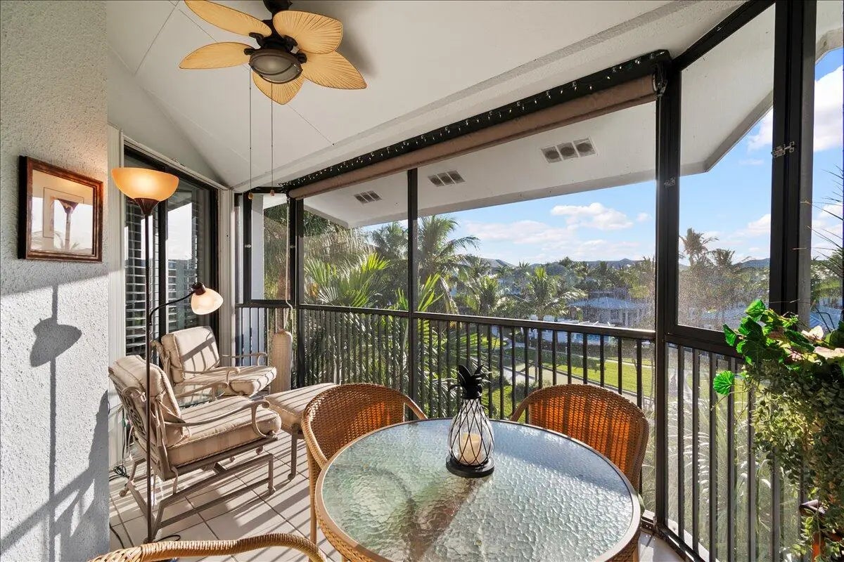 Welcome to Bay Colony an intracoastal community in Juno Beach, where coastal living meets resort-style amenities. This rare 4th-floor penthouse offers soaring 24-foot ceilings, a wood burning fireplace, a spacious loft-style third bedroom, and a large private balcony overlooking the resort-style pool and lush gardens--an ideal setting for morning coffee or evening relaxation. The residence features 3 bedrooms and 2 bathrooms, an upgraded kitchen with custom cabinetry and granite countertops, and a thoughtfully designed floor plan that feels open, bright, and inviting. A covered carport adds everyday convenience, while the penthouse location provides privacy and an elevated sense of space.