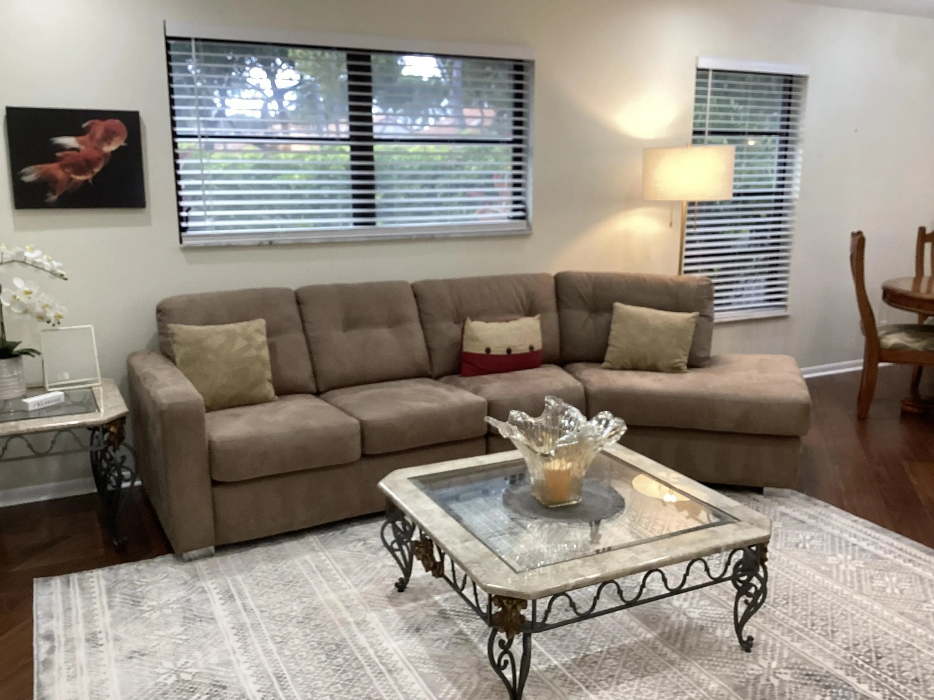 Look No More ! You just found your dream home !!This stunning end unit villa is fully updated and offered fully furnished so you just bring your toothbrush! This 2 bedroom plus den has 2 bathrooms, an interior laundry room and one car garage. New appliances, new furnishings, new floors, freshly painted, and new interior doors. Lush plantings surround the private patio for easy relaxation and entertaining. This is a MUST-SEE.